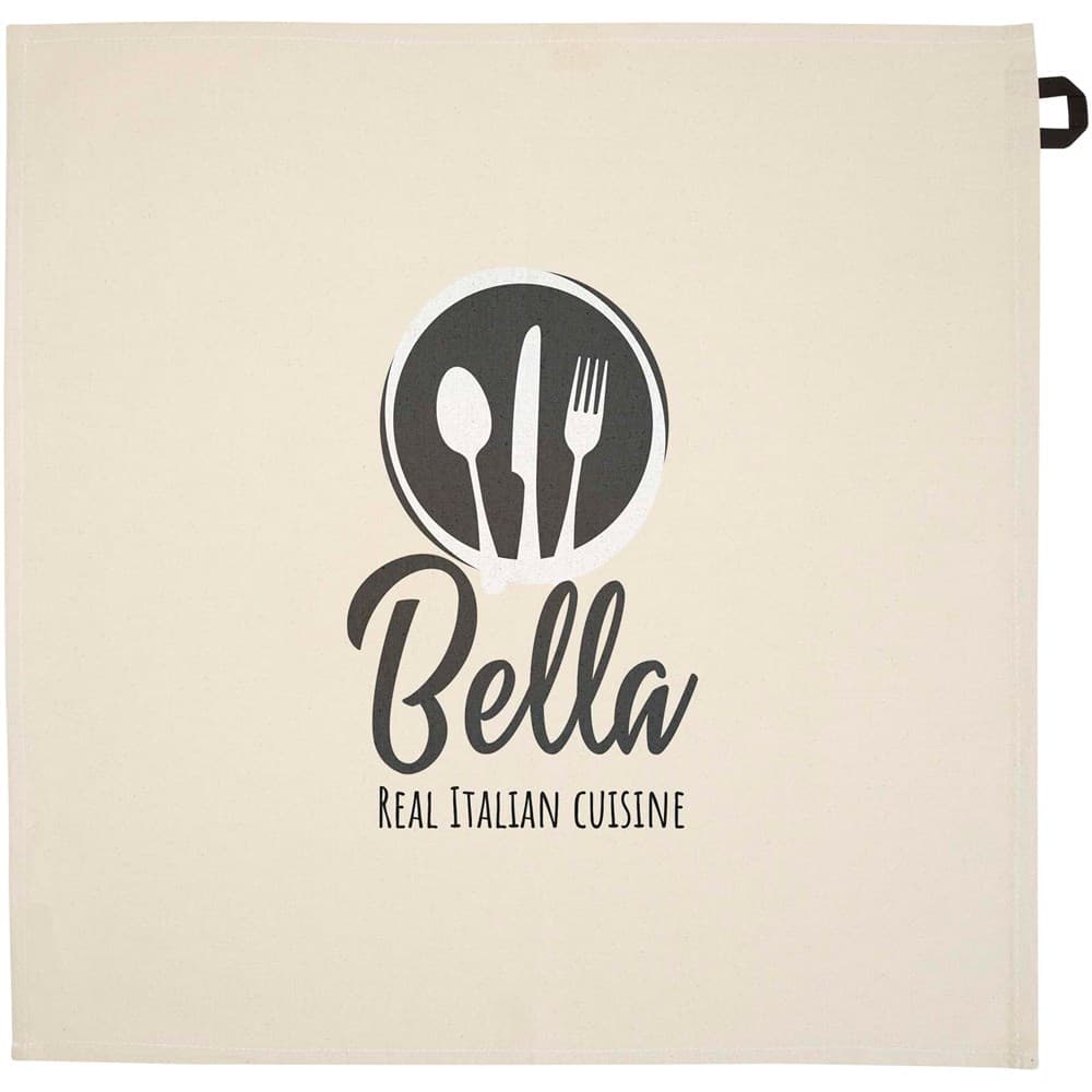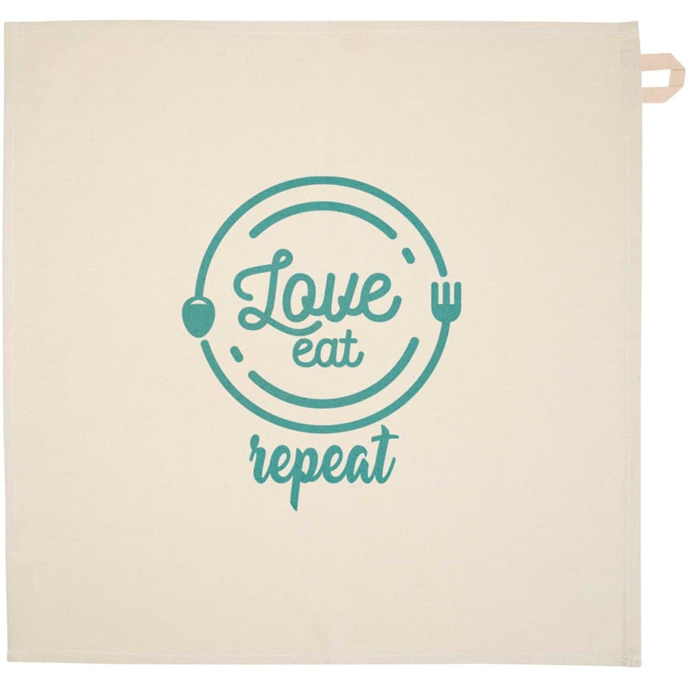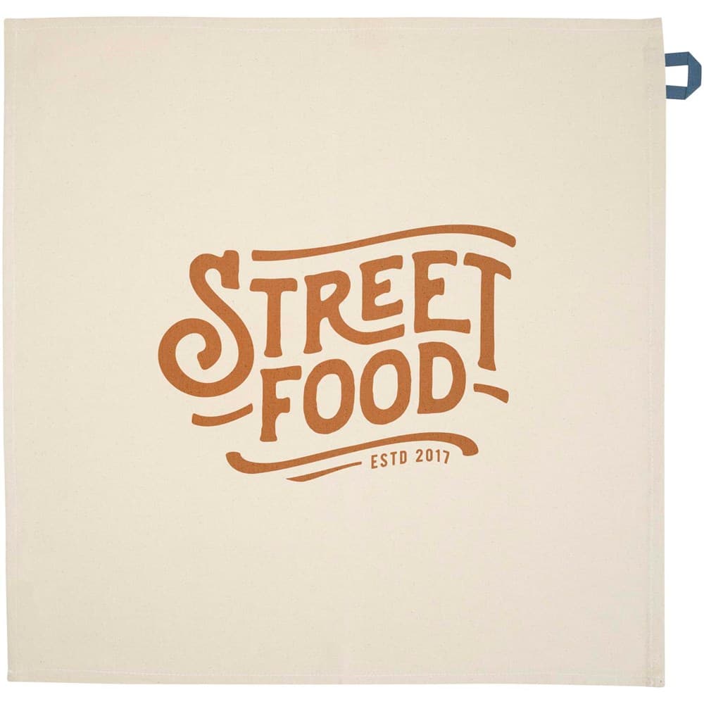 Keukenhanddoek van 100% GRS gecertificeerd gerecycled katoen van 200 g/m² , met een opvallende contrasterende lus. Handdoekformaat: 50 x 50 cm.