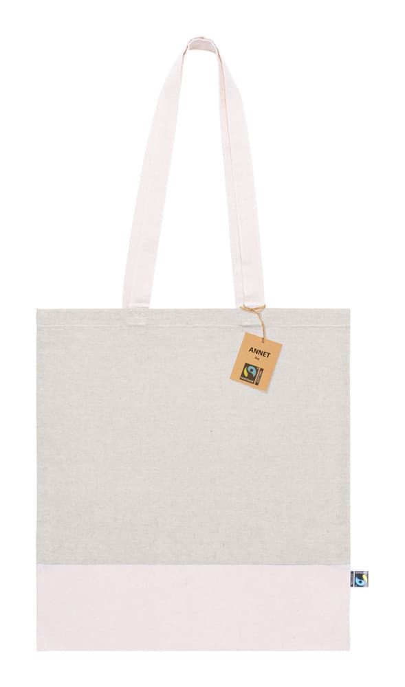 Herbruikbare, tweekleurige Fairtrade katoenen boodschappentas met lange hengsels. 100% Fairtrade katoen, 140 g/m². Met onderscheidend Fairtrade keurmerk.