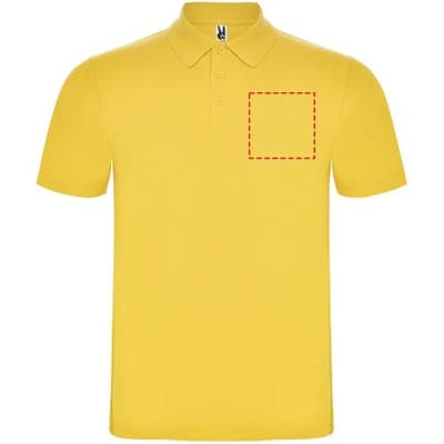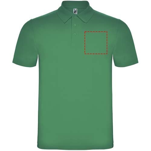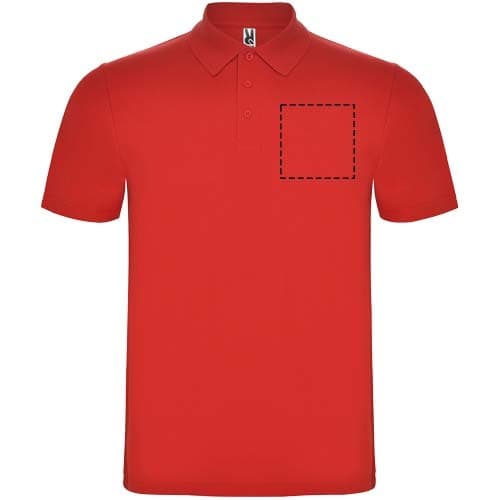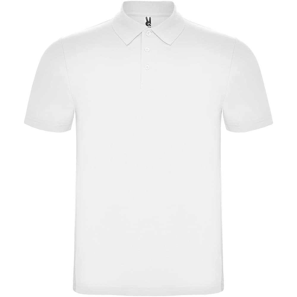 Poloshirt met korte mouwen, sluiting met drie knopen en 1x1 geribde kraag. Versterkte bedekte naden in de kraag. Verwijderbaar etiket. Het model is 190 cm en draagt maat L.