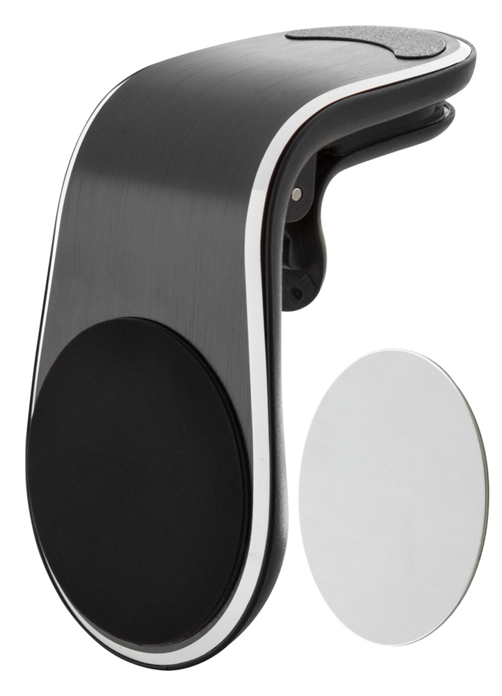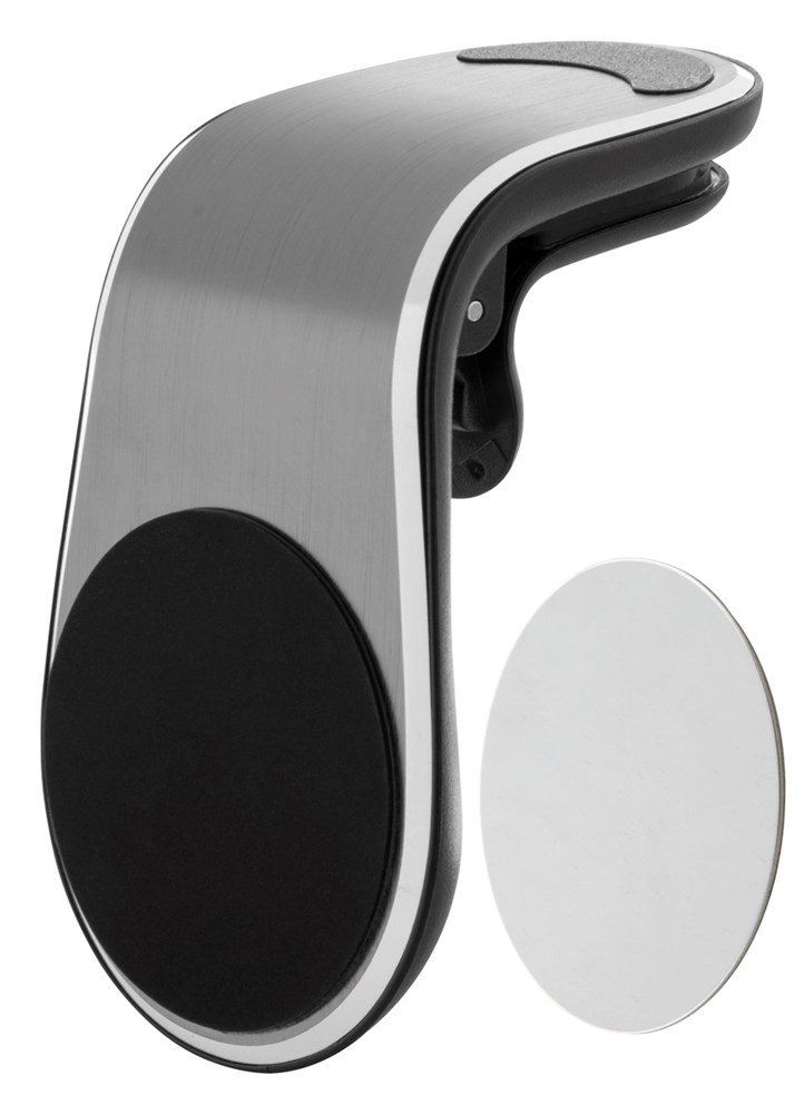 Aluminium, magnetische mobiele telefoonhouder voor in het ventilatierooster. Inclusief zelfklevende metalen plaat.