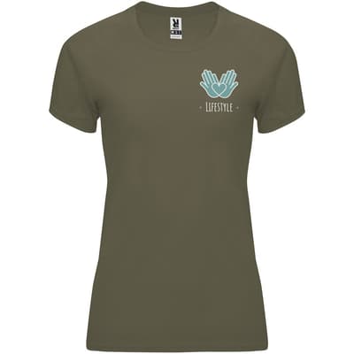 Technisch raglanshirt met korte mouwen voor dames. Ronde hals met bijpassende bedekte naden. Mouwpanelen. Bijpassende overlock in het armsgat en mouwpaneel. CONTROL-DRY-stof. Verwijderbaar etiket. Technische stof. Uv-beschermingsfactor. Het model is 173 cm en draagt maat S. Ideaal om sportkleding te bedrukken.