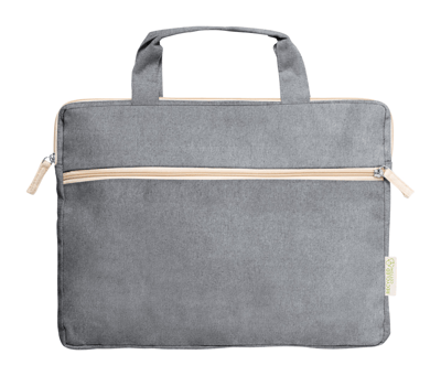 Documententas van gerecycled katoen met vak met rits en onderscheidend label van gerecycled katoen. 100% gerecycled katoen, 275 g/m².