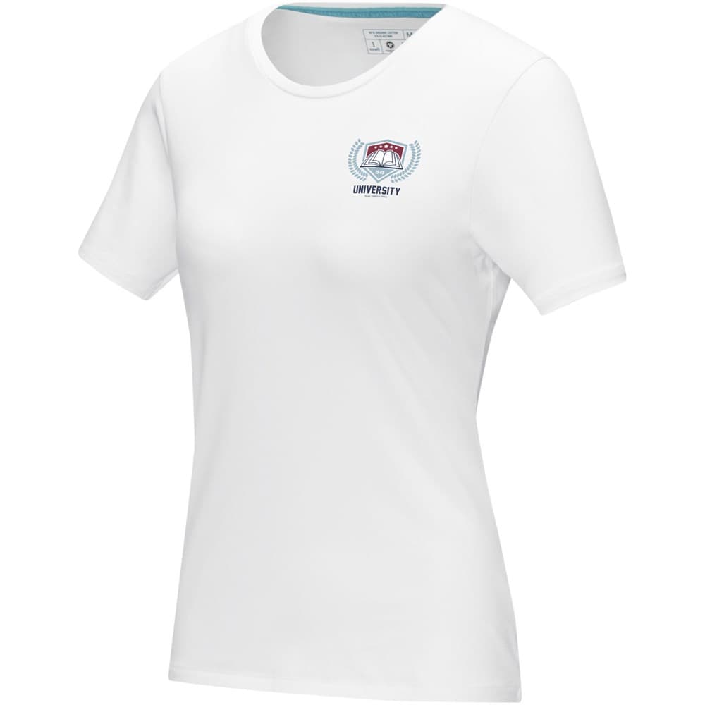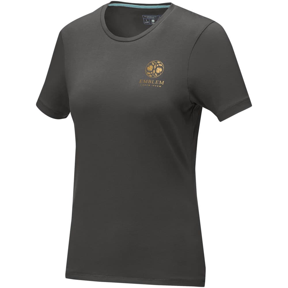 Het Balfour GOTS organic t-shirt voor vrouwen met korte mouwen is een stijlvolle en duurzame keuze. Gemaakt van 95% GOTS gecertificeerd biologisch katoen is dit t-shirt niet alleen goed voor het milieu, maar ook zacht en comfortabel om te dragen. De 5% elastaan zorgt voor een zachte en rekbare pasvorm, en met zijn ronde hals en korte mouwen is dit t-shirt zowel duurzaam als modern. De stof heeft een gewicht van 200 g/m², waardoor het kledingstuk duurzaam en hoogwaardig aanvoelt. De GOTS-certificering garandeert een 100% gecertificeerde toeleveringsketen van grondstof tot onze druktechnieken, waardoor dit kledingstuk een milieuvriendelijke keuze is.