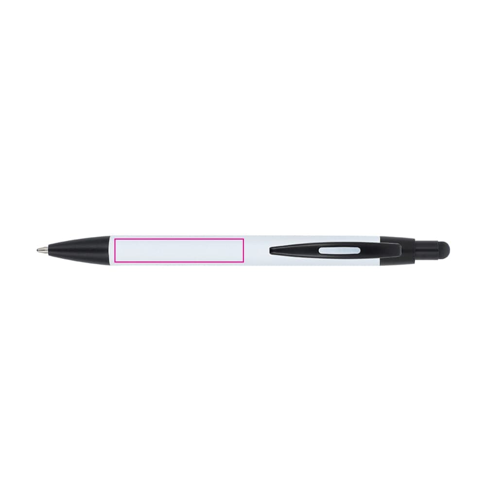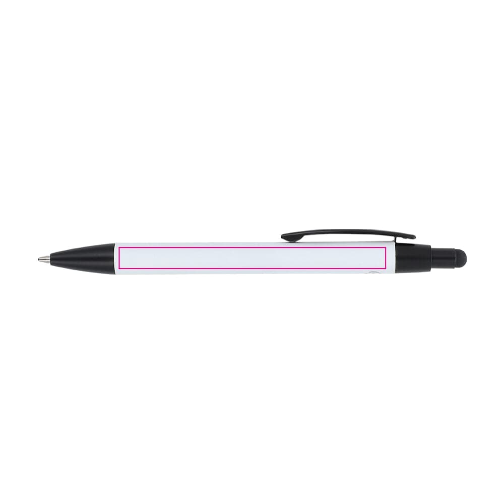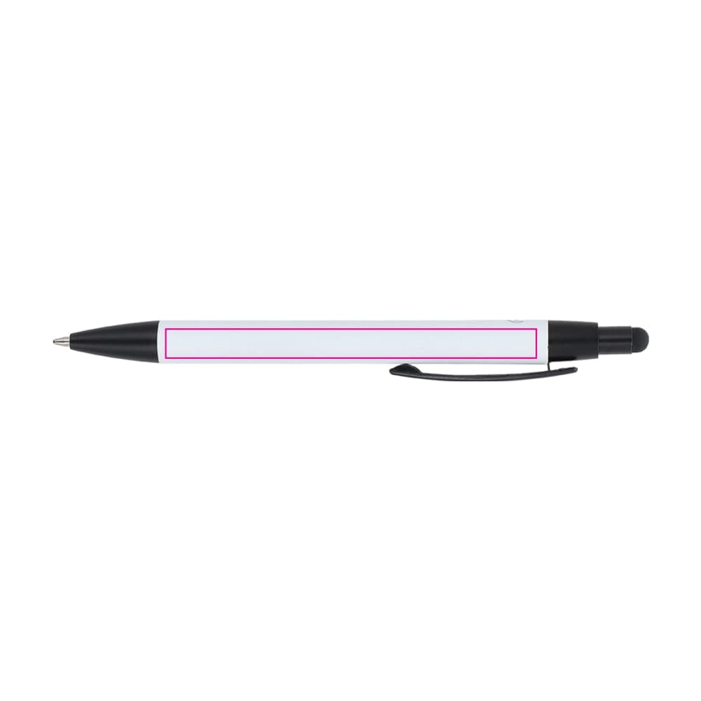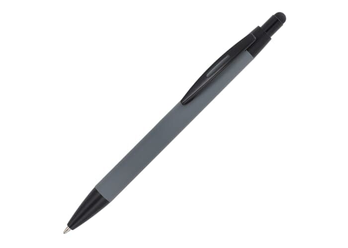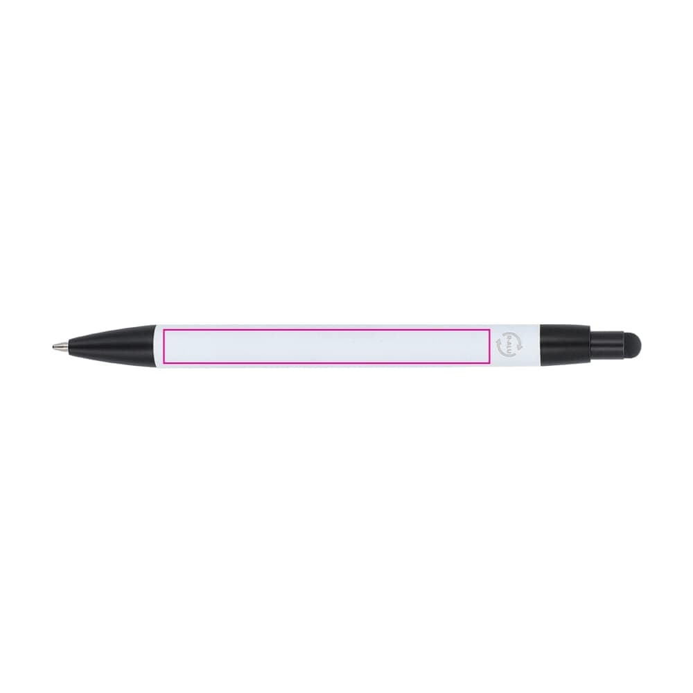 Balpen met metalen clip, stylusfunctie en een softtouch afwerking van gerecycled aluminium. De balpen wordt geleverd met een blauwe jumbo vulling.