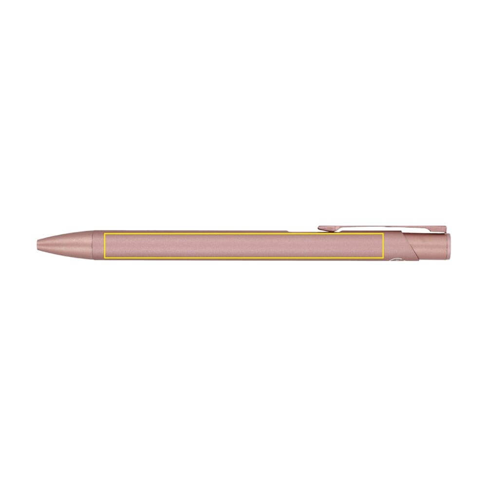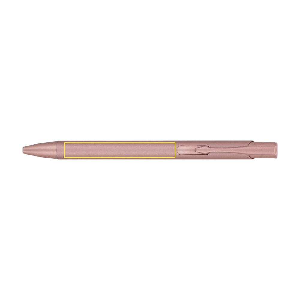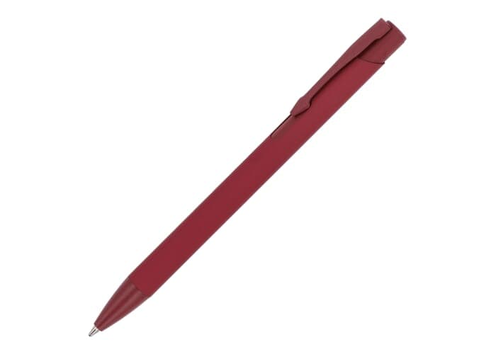 Softtouch balpen gemaakt van gerecycled aluminium. Met bijpassende kleur clip en jumbo vulling met blauwe schrijfkleur.