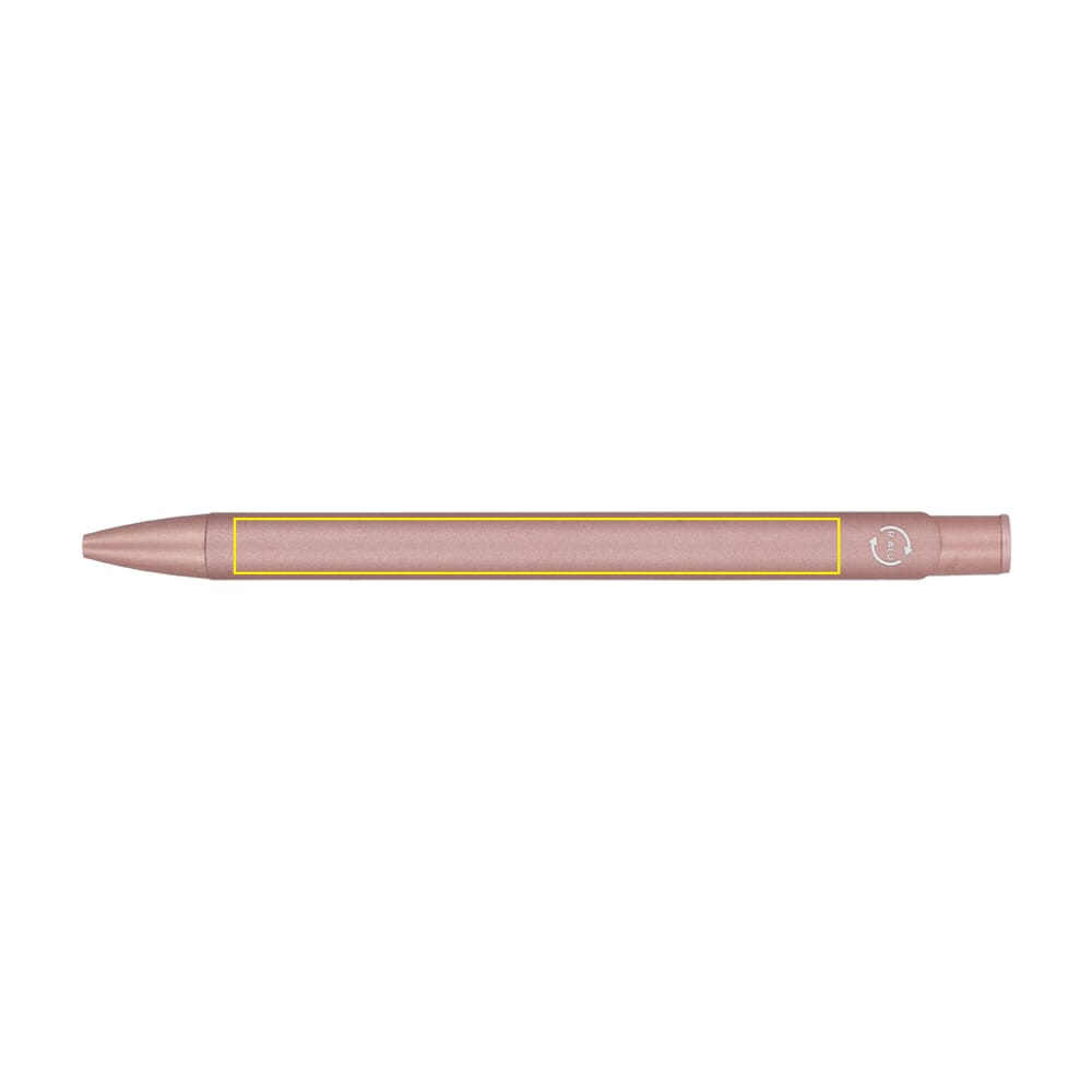 Softtouch balpen gemaakt van gerecycled aluminium. Met bijpassende kleur clip en jumbo vulling met blauwe schrijfkleur.