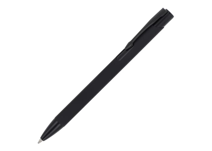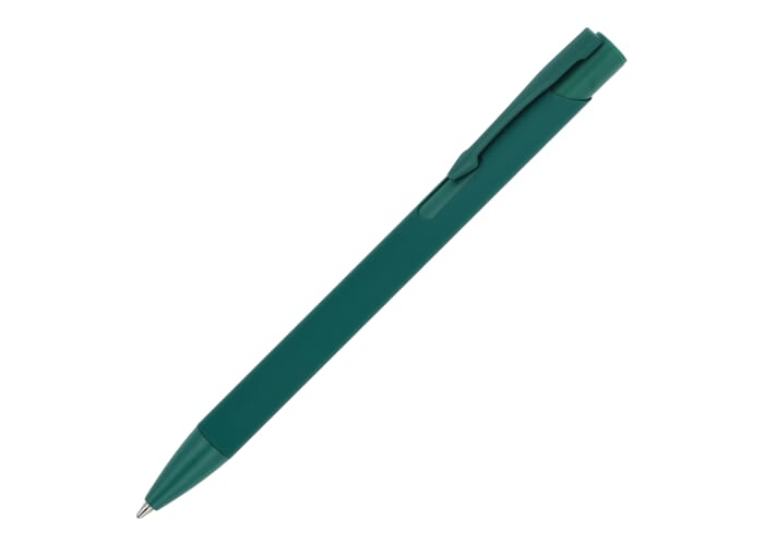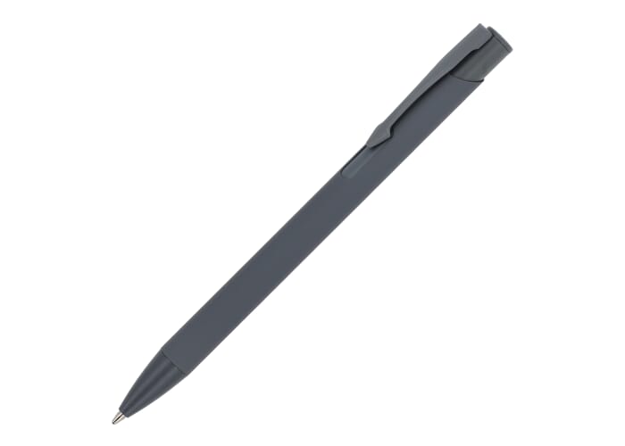 Softtouch balpen gemaakt van gerecycled aluminium. Met bijpassende kleur clip en jumbo vulling met blauwe schrijfkleur.