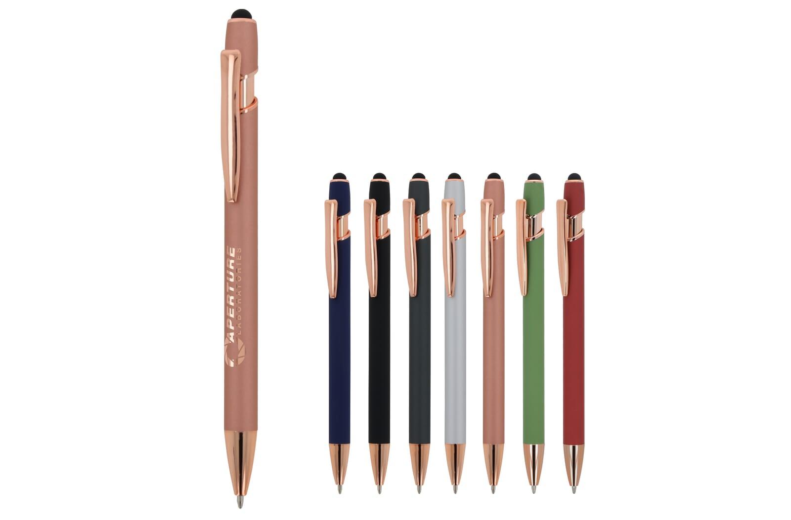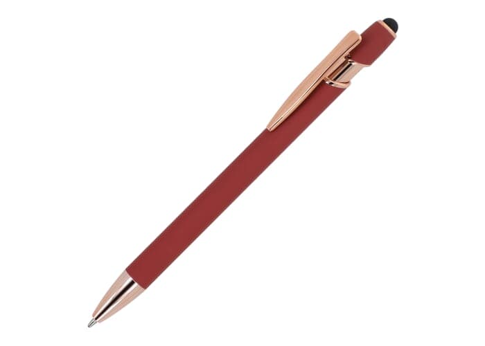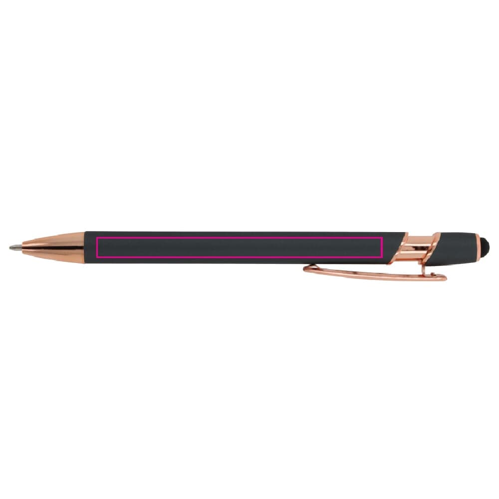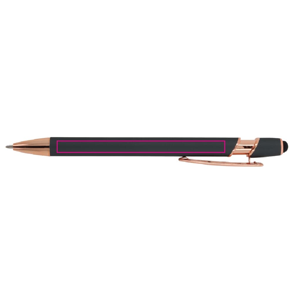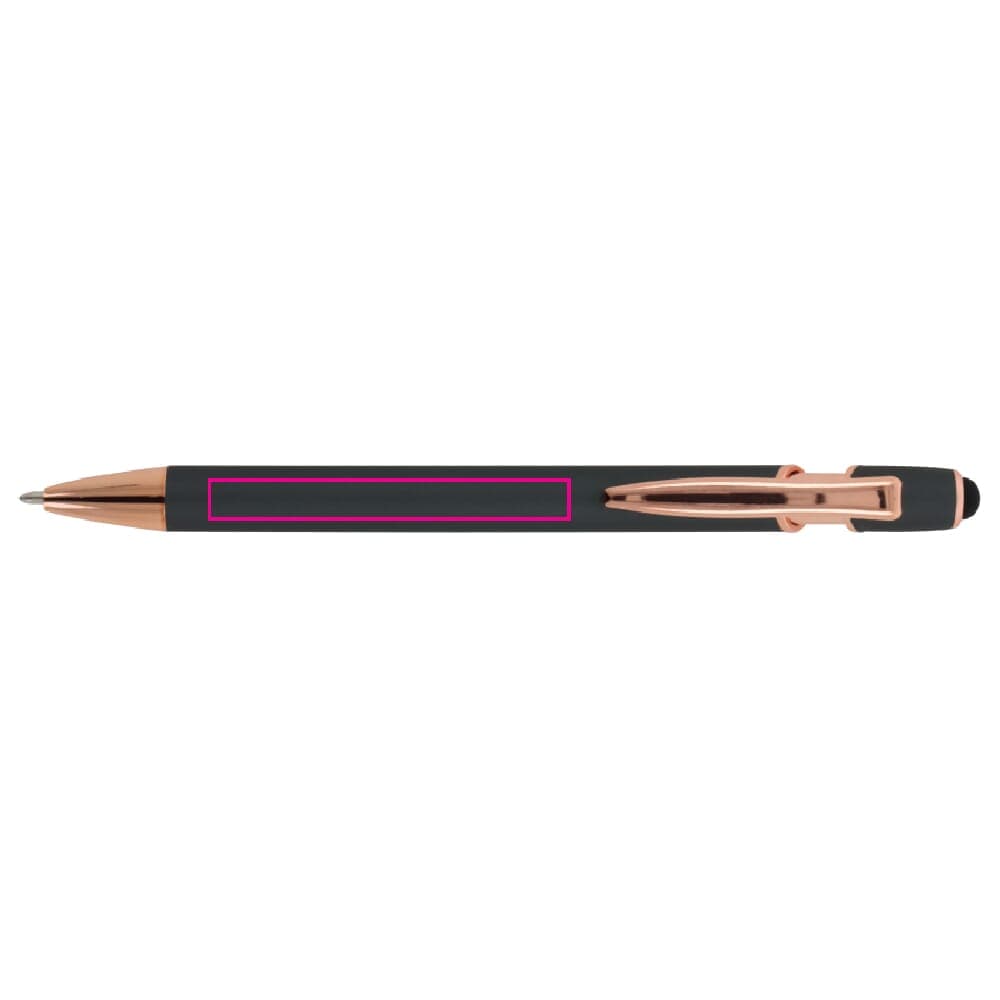 Ervaar het luxe schrijfcomfort van de Balpen Paris Luxe. Deze metalen balpen met Rose Gold elementen is gemaakt van aluminieum en heeft een soft-touch afwerking voo reen aangename grip. De pen is uitgerust met een solide metalen clip en een stylus voor touchscreens. De schrijfkleur is blauw en de balpen heeft een soepel drukmechanisme.