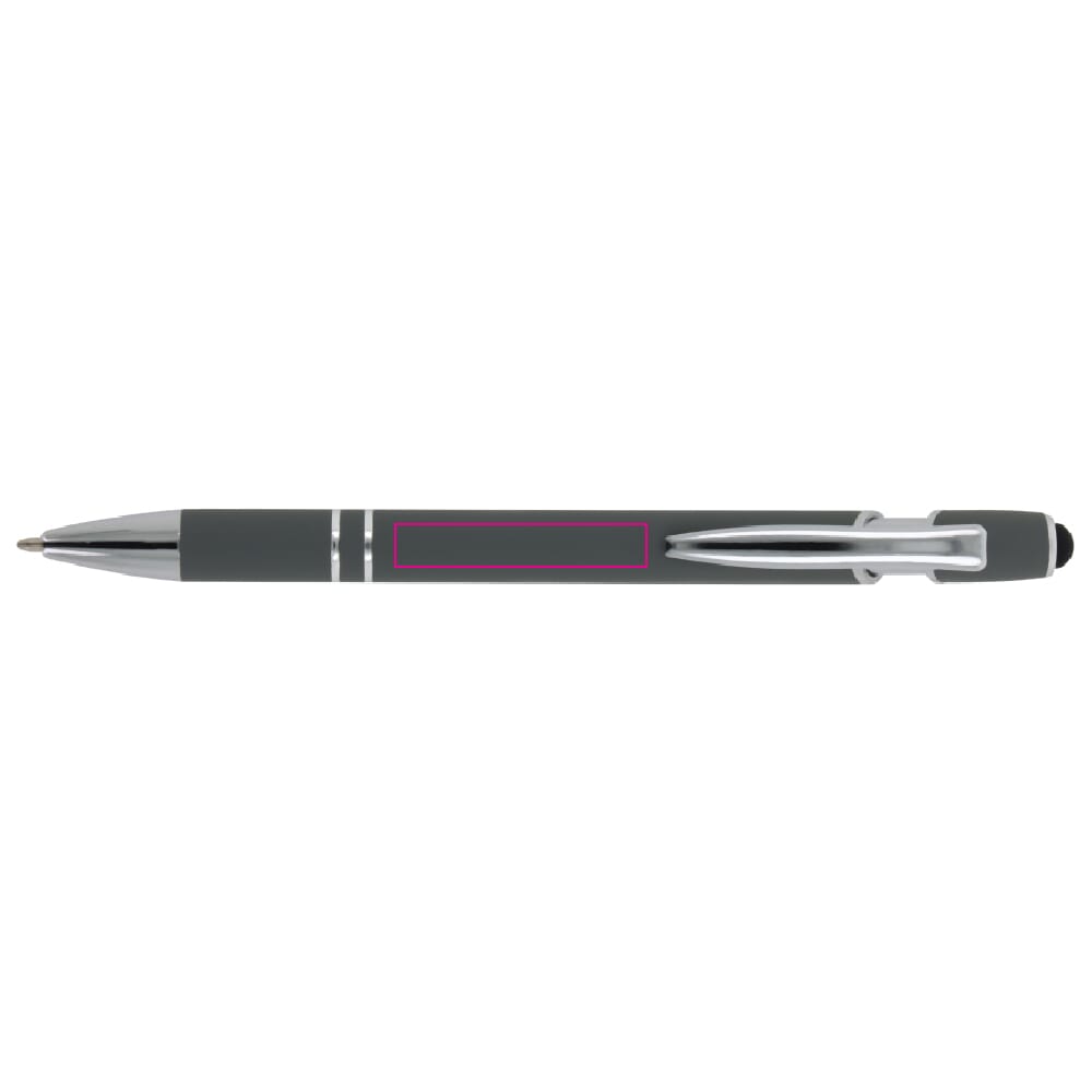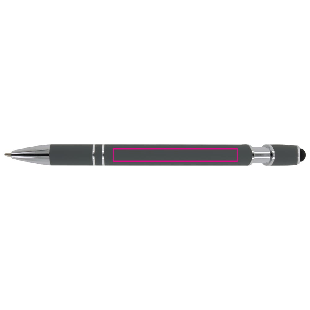 Verhoog je schrijfcomfort met de Balpen Paris. Deze balpen metaal is gemaakt van hoogwaardig aluminium en heeft een luxe soft-touch afwerking. De pen beschikt over een metalen clip en een handige stylus voor gebruik op touchscreens. Met een blauwe schrijfkleur en het drukmechanisme is de pen eenvoudig in gebruik.