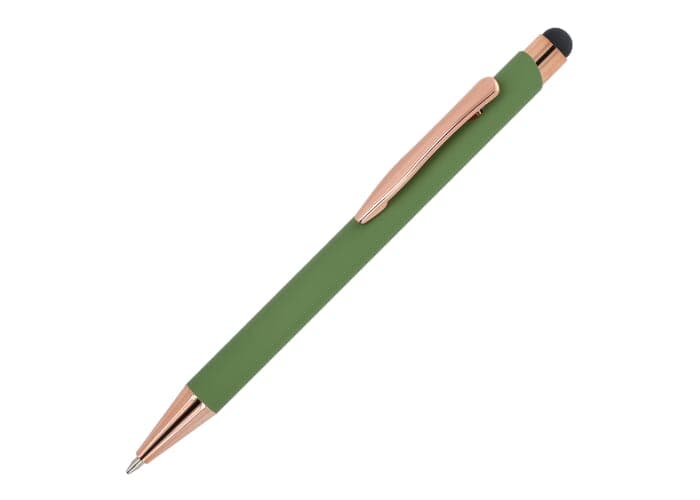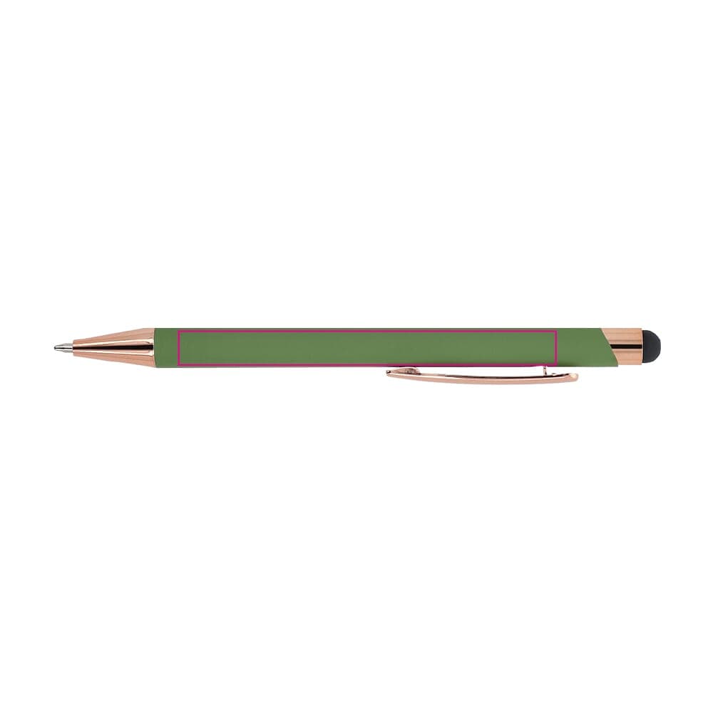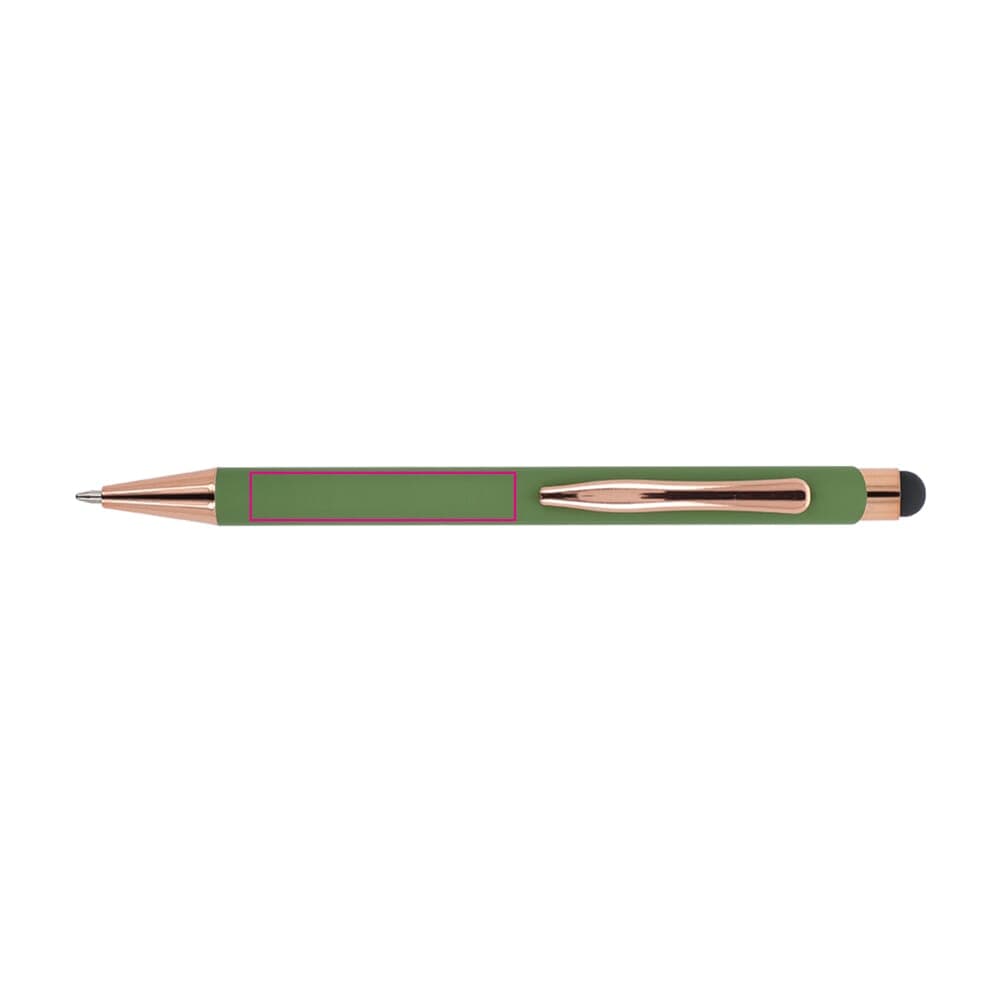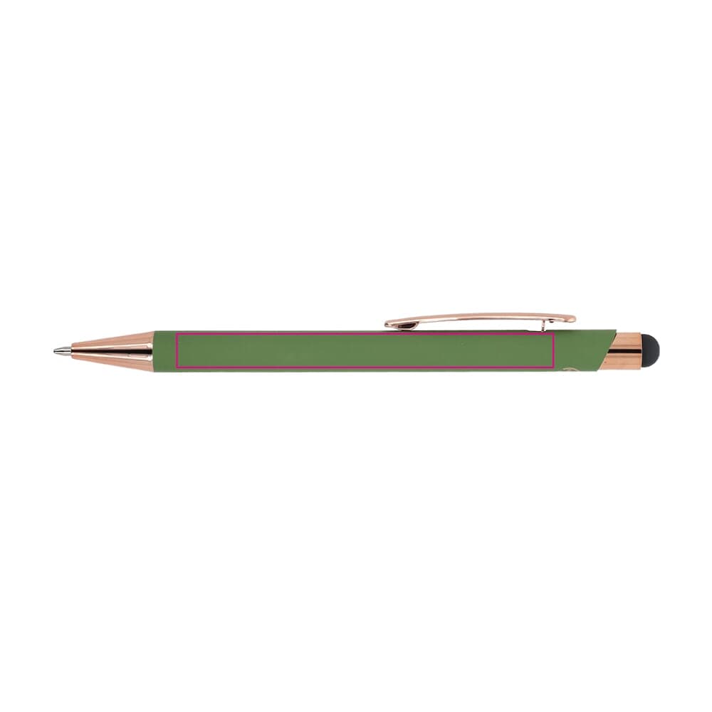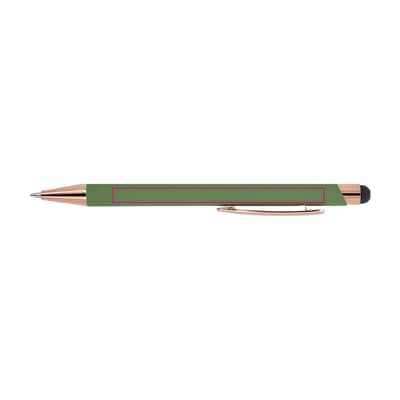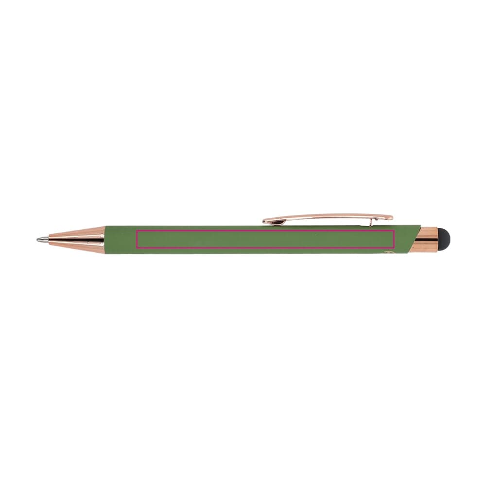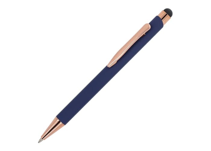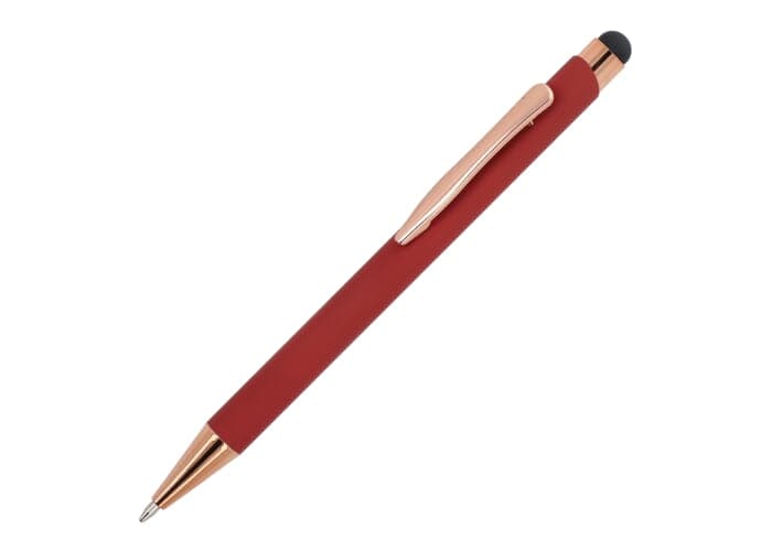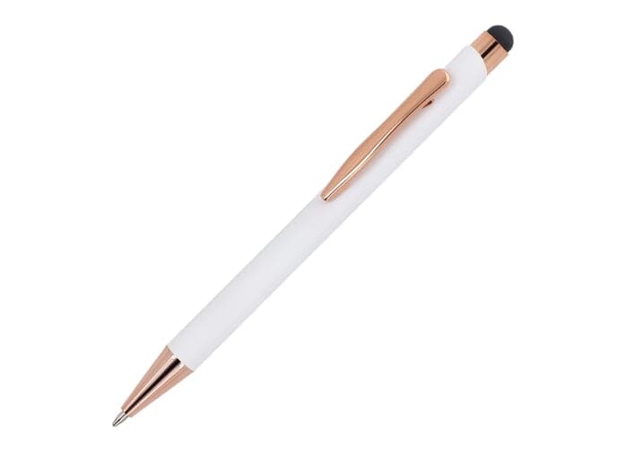 Stijlvolle balpen van gerecycled aluminium met een metalen clip. De rosékleur komt terug in de accenten van de balpen en de lasergraveerkleur. De balpen wordt geleverd met een blauwschrijvende jumbo-vulling.