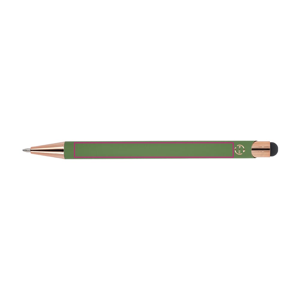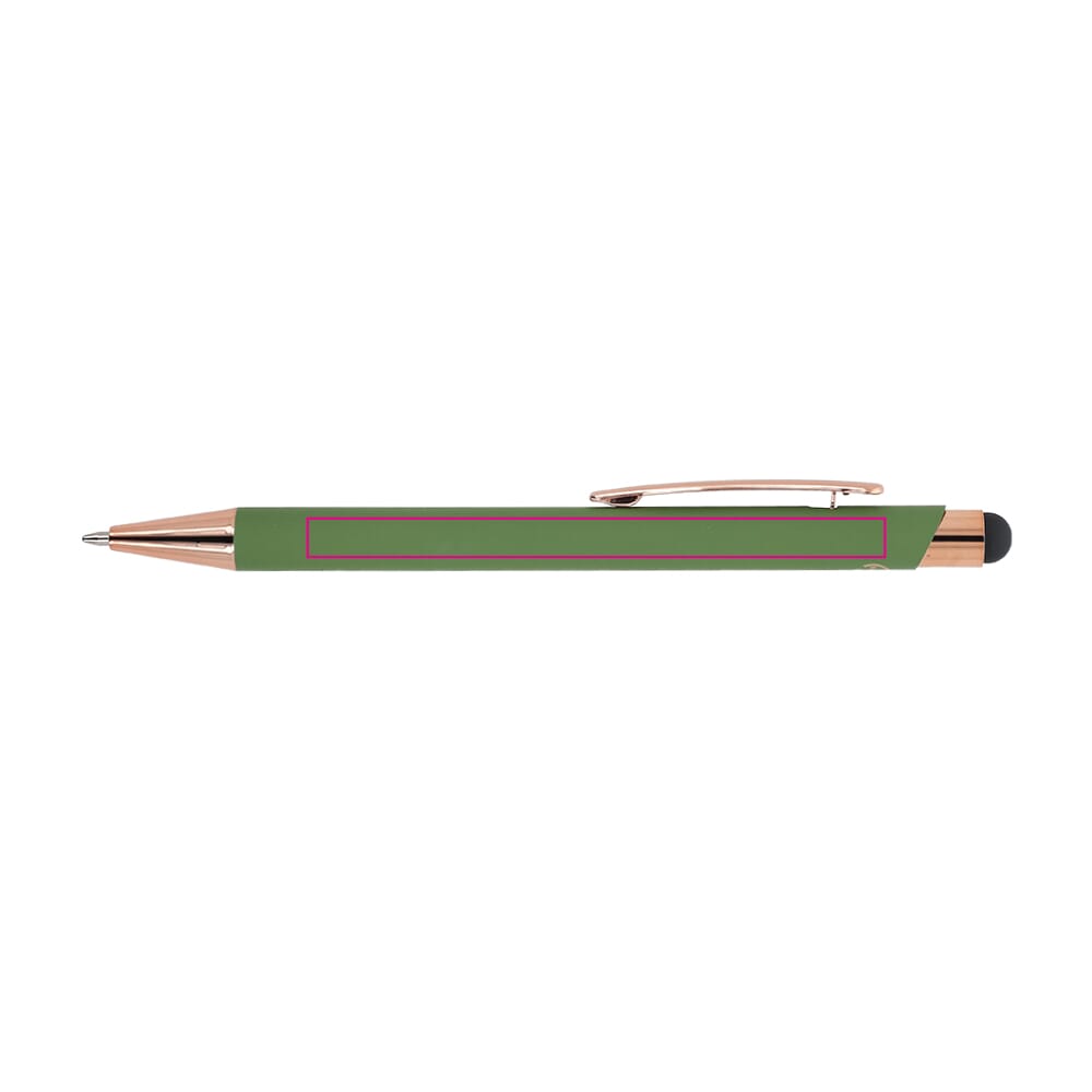 Stijlvolle balpen van gerecycled aluminium met een metalen clip. De rosékleur komt terug in de accenten van de balpen en de lasergraveerkleur. De balpen wordt geleverd met een blauwschrijvende jumbo-vulling.
