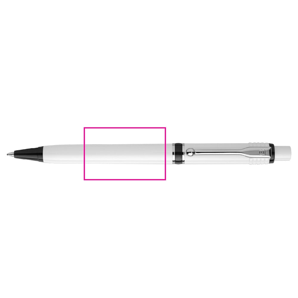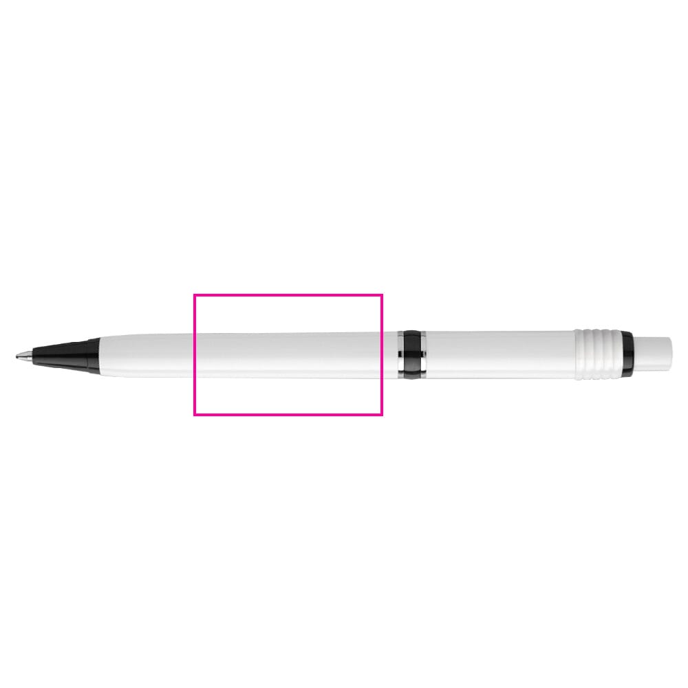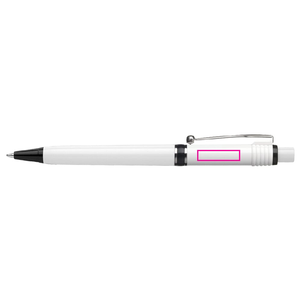 Een van de meest populaire modellen van Stilolinea is de hardcolour Raja balpen met witte barrel en gekleurde tip en ring. De pen bevat een Jumbo vulling met blauw schrijvende inkt. Het heeft een drukmechaniek en is gemaakt van metaal en ABS kunststof. Geproduceerd in Europa. Kleur combinaties voor deze pen zijn mogelijk vanaf 5.000 stuks.