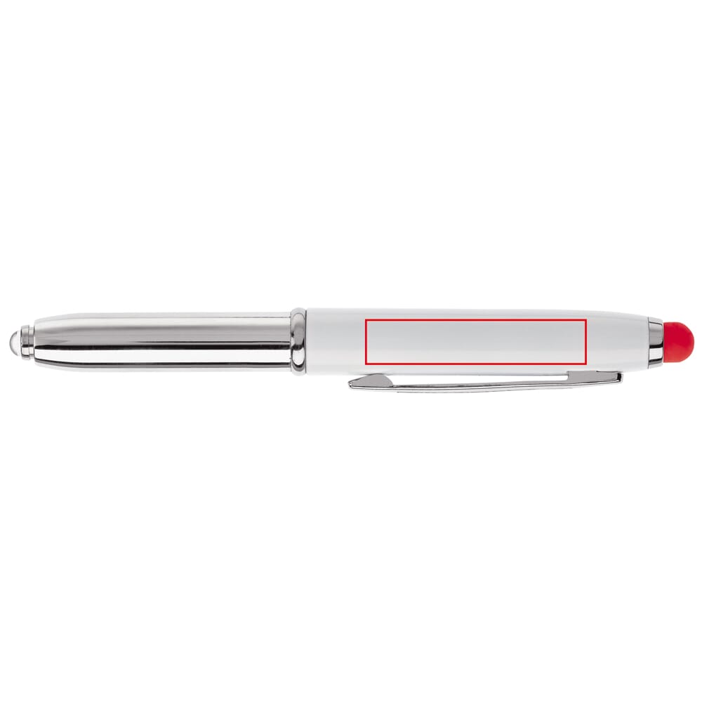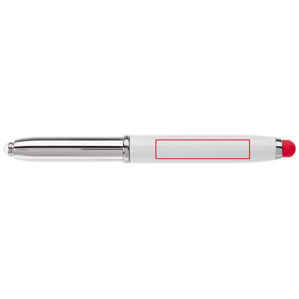 Touchscreen metalen balpen met lampje. Balpen te gebruiken door dop eraf te halen. Blauwschrijvend.
