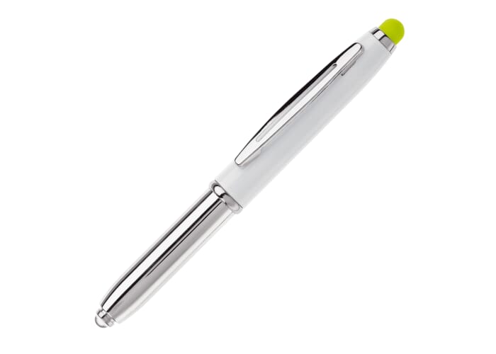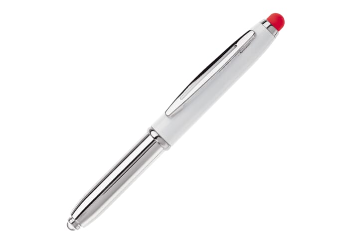 Touchscreen metalen balpen met lampje. Balpen te gebruiken door dop eraf te halen. Blauwschrijvend.