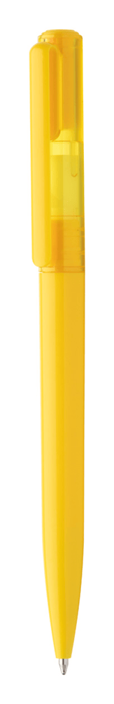 Plastic twister balpen met transparant gedeelte. Blauw schrijvend.