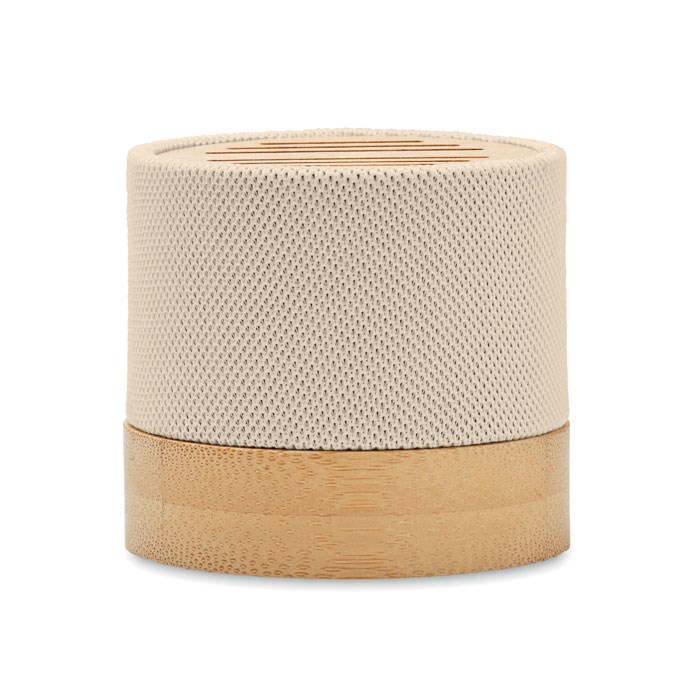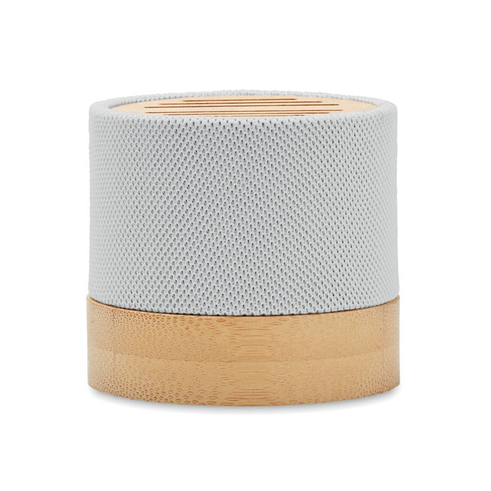 5.0 draadloze luidspreker in RPET behuizing met bamboe detail aan de bovenkant. Het heeft een LED- licht indicator. 1 Oplaadbare Li-ION- batterij van 300 mAh inbegrepen. Inclusief een SD-kaartpoort en een AUX/USB-kabel. Functie voor handenvrij bellen. Outputgegevens: 3W, 3 Ohm en 5V. Speelduur ca. 3 uur. Bamboe is een natuurlijk product, de kleur per artikel kan verschillen.