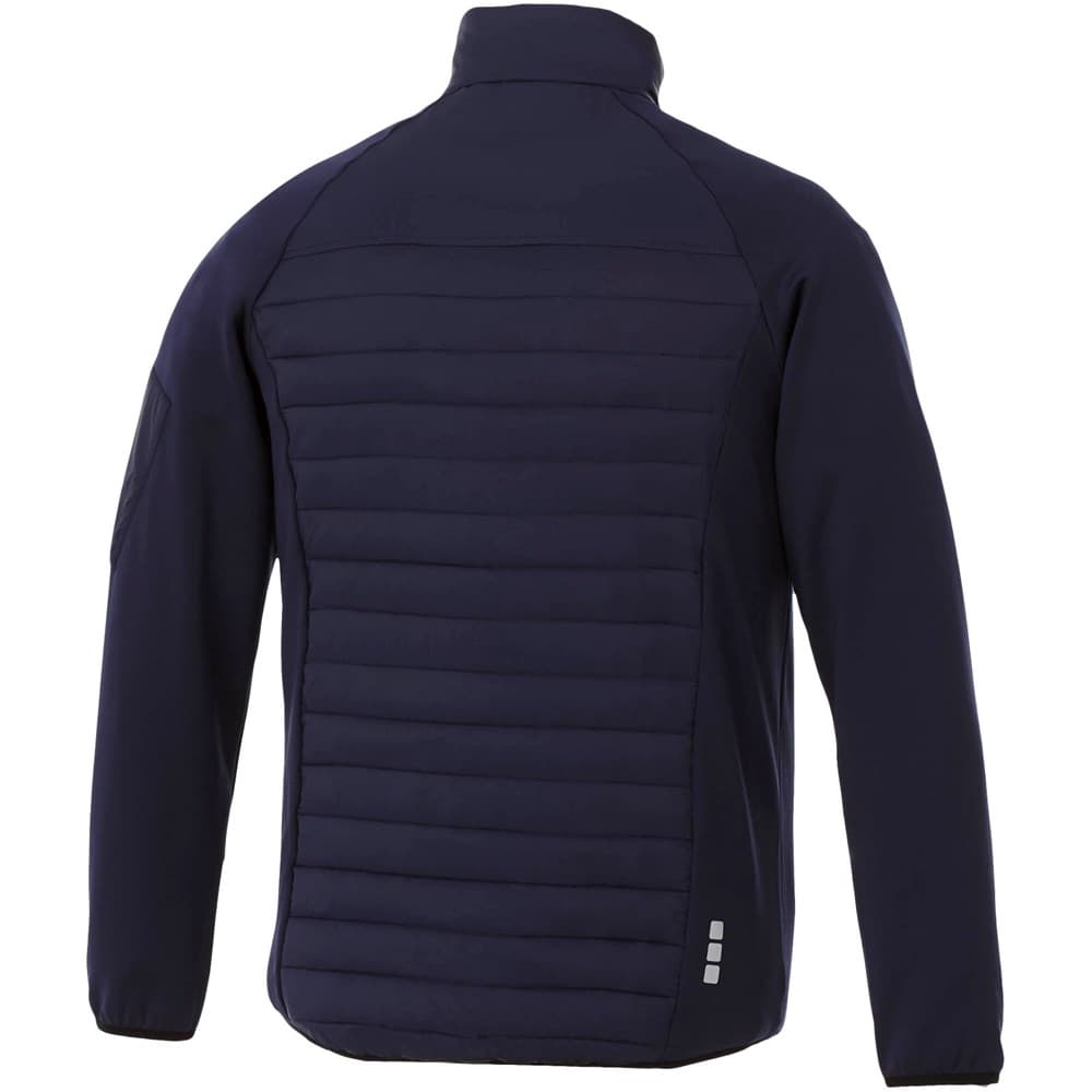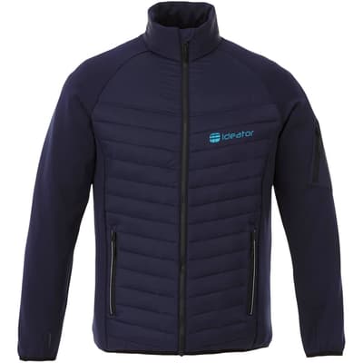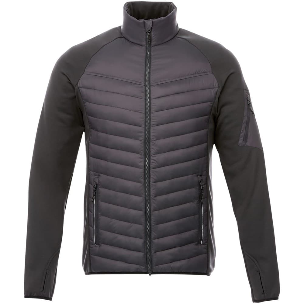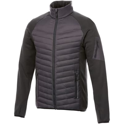 De Banff hybride geïsoleerde jas voor heren - een perfecte combinatie van stijl en prestaties. De stormflap aan de binnenkant zorgt ervoor dat de wind niet door het jack heen komt, en de afgezakte zoom aan de achterkant zorgt voor extra bedekking en warmte. De elastische bies in een contrasterende kleur voegt een stijlvol accent toe en zorgt voor een goede pasvorm. De doffe cire 380T geweven stof van het jack heeft een waterafstotende en donsbestendige afwerking, gemaakt van nylon (38 g/m2). De contraststof is een interlock breisel van polyester en elastaan (245 g/m2) en voegt flexibiliteit en comfort toe. De nepdonsisolatie van polyester zorgt voor lichtgewicht warmte, perfect voor frisse dagen.