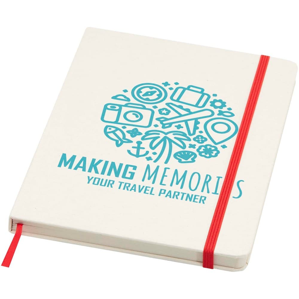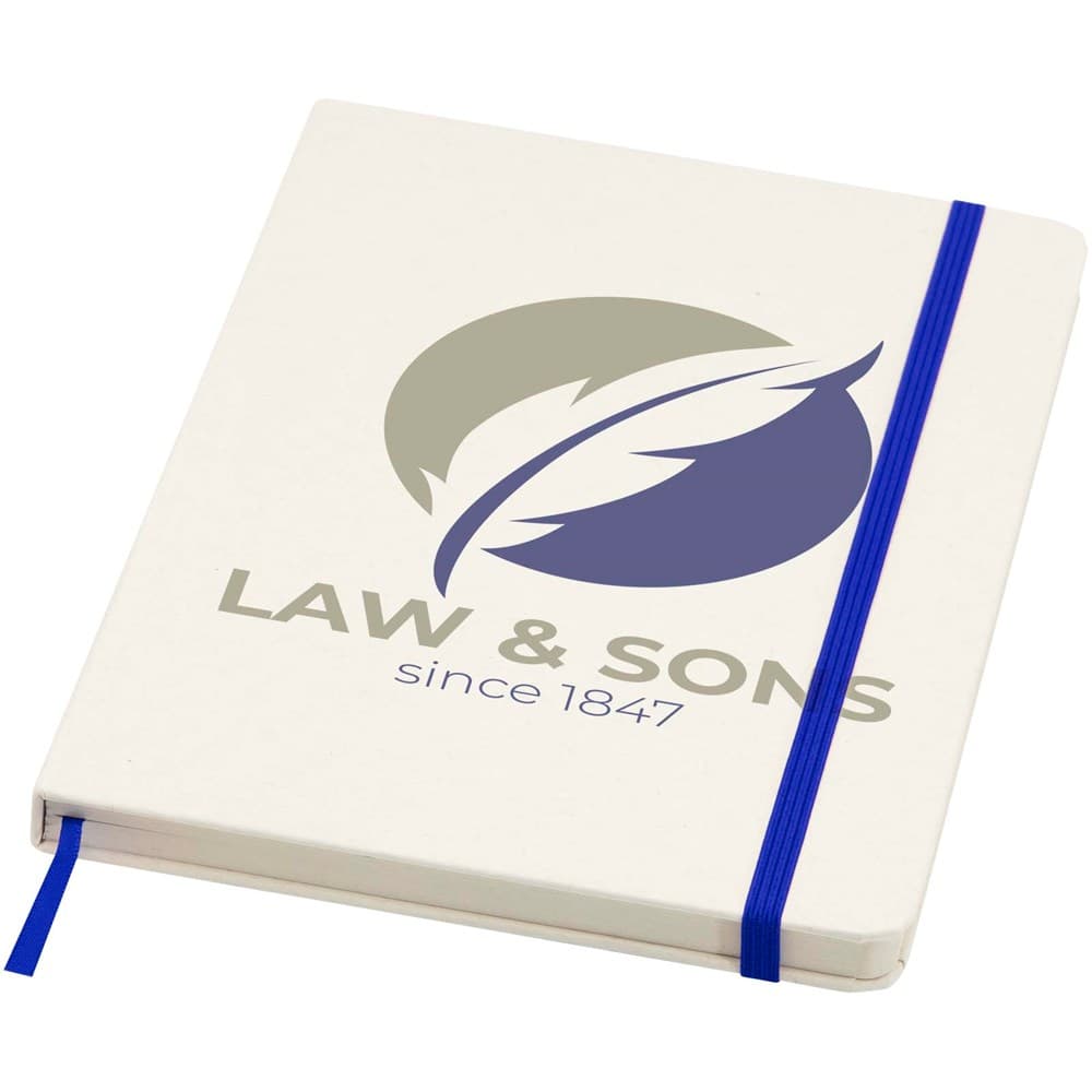 Witte A5 notitieboek met gekleurde elastische sluiting en lint. Inclusief 80 vellen (60 g / m2) geli