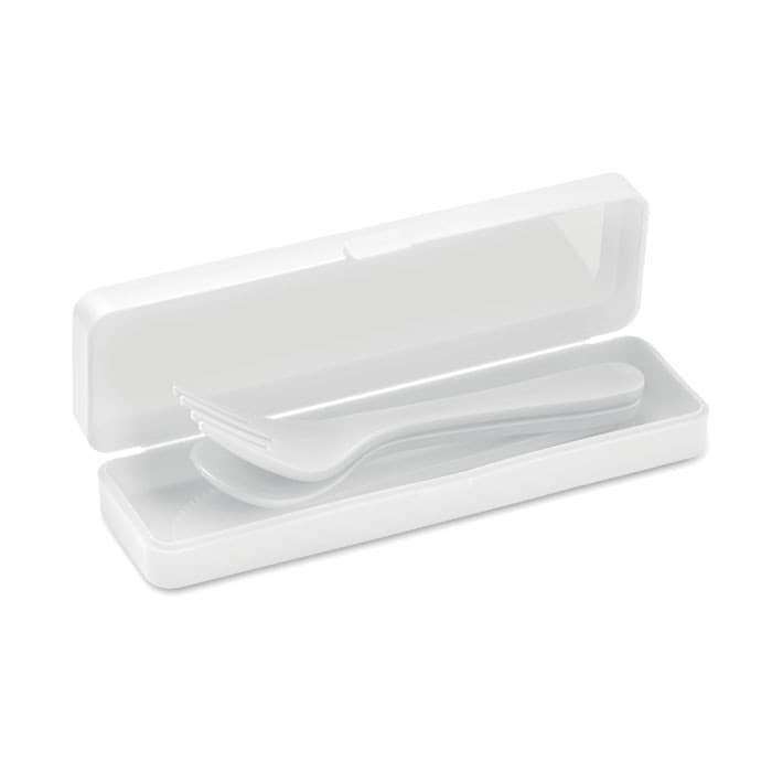Herbruikbare draagbare PP bestekset en etui. Inclusief lepel, vork en mes.