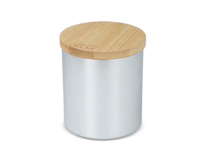 Bhakti plantaardige geurkaars in gerecycled aluminium potje Wit