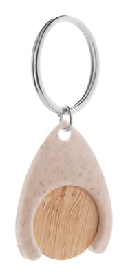 Bamboe winkelwagenmunt in ecologische sleutelhanger van tarwestro. Formaat munt: ø25×2 mm.