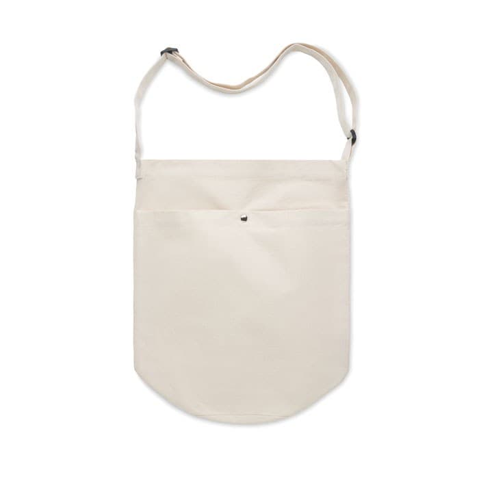 Canvas tas met lange verstelbare schouderriem en groot voorvak met drukknoopsluiting. Inclusief binnenzak. 270 gr/m². Perfect voor boodschappentassen bedrukken.