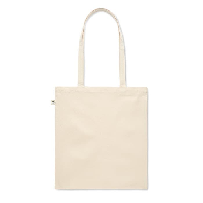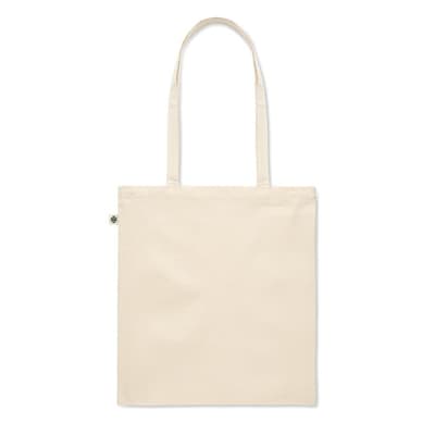 Boodschappentas van organic katoenen met lange hengsels. 180 gr/m².