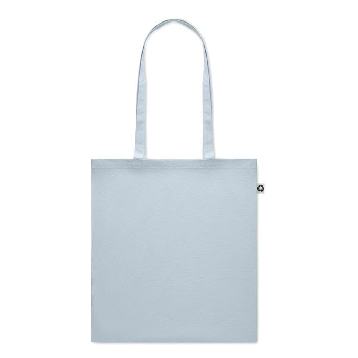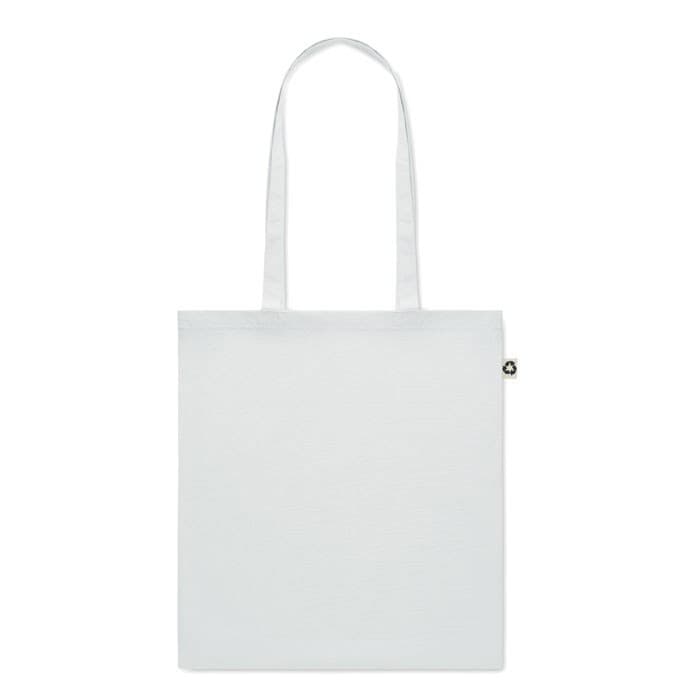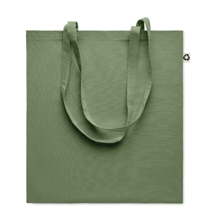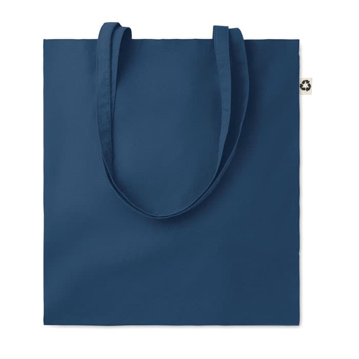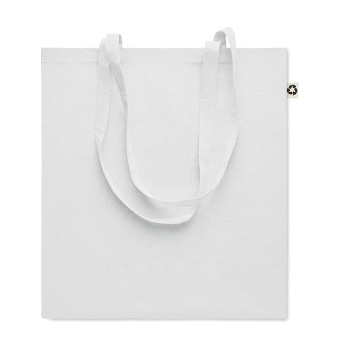 Gerecyclede post-consumer katoenen boodschappentas (65% gerecycled katoen, 35% gewone katoen) met lange hengsels. 140 gr/m².