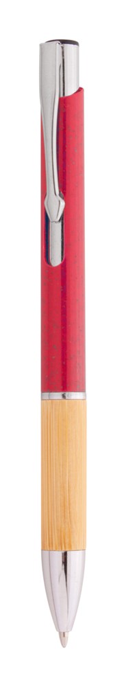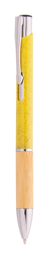 Ecologische plastic balpen van tarwestro met bamboe grip en metalen onderdelen. Blauwschrijvend.