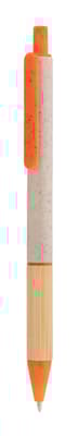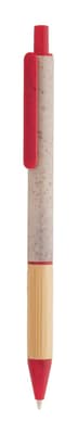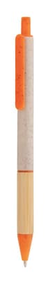 Ecologische plastic balpen van tarwestro met bamboe grip en metalen onderdelen. Blauwschrijvend.
