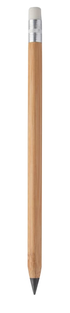 Duurzame bamboe inktloze pen met witte gum en metalen punt, die het papier oxideert. Deze pen schrijft op dezelfde manier als een potlood en is ook uitwisbaar.