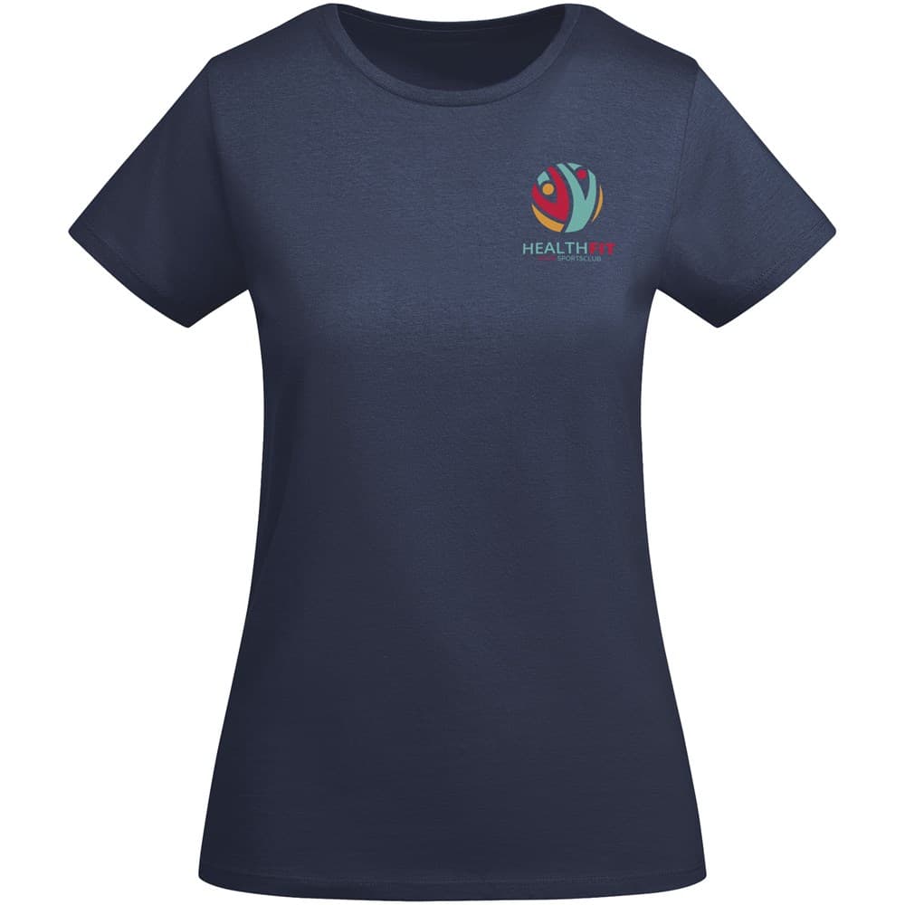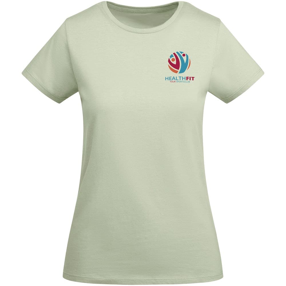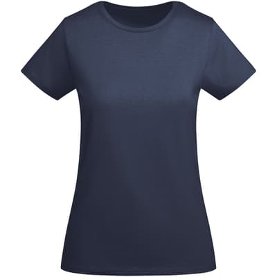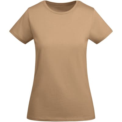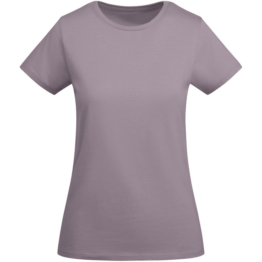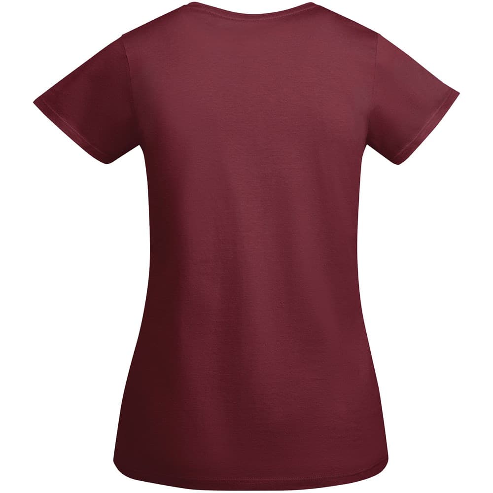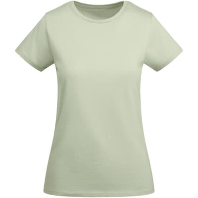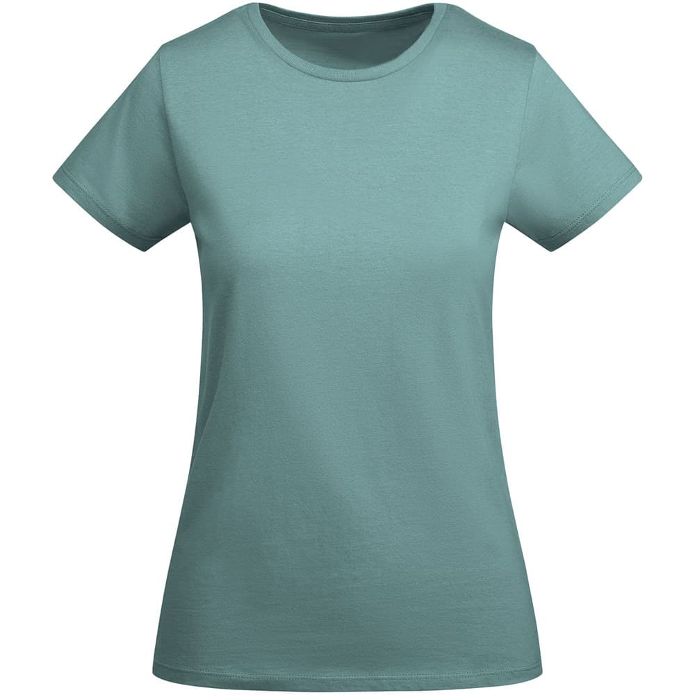 Getailleerd T-shirt met korte mouwen voor dames van OCS-gecertificeerd biologisch katoen. 1x1 geribde ronde hals. Versterkte bedekte naden in de kraag. Zijnaden. Verwijderbaar etiket. OCS biologische stof.