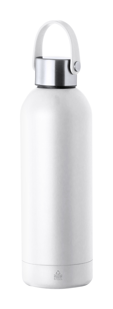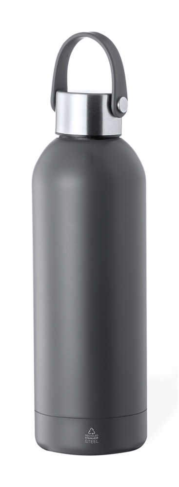 Dubbelwandige, gerecyclede roestvrijstalen vacuümgeïsoleerde fles met draagdop, 500 ml.