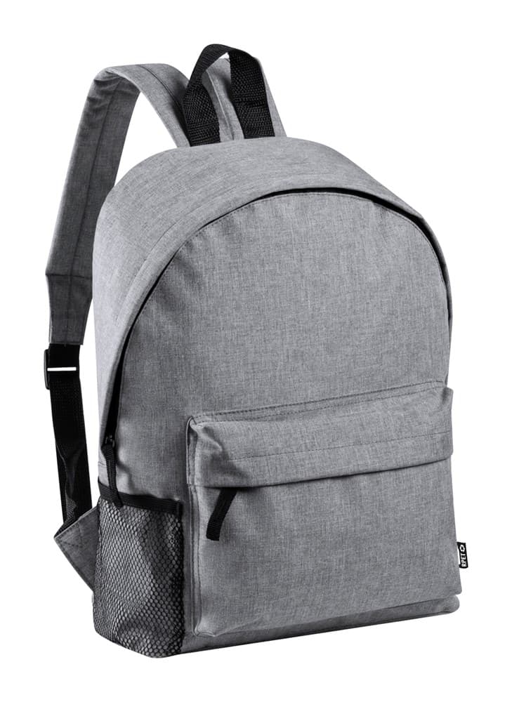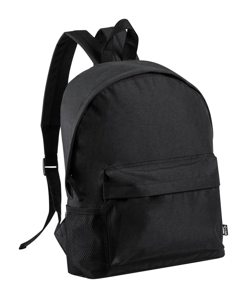 Rugzak met voorvak met ritssluiting, mesh zijvak, gewatteerde achterkant en schouderbanden. 600D gerecycled PET-polyester.