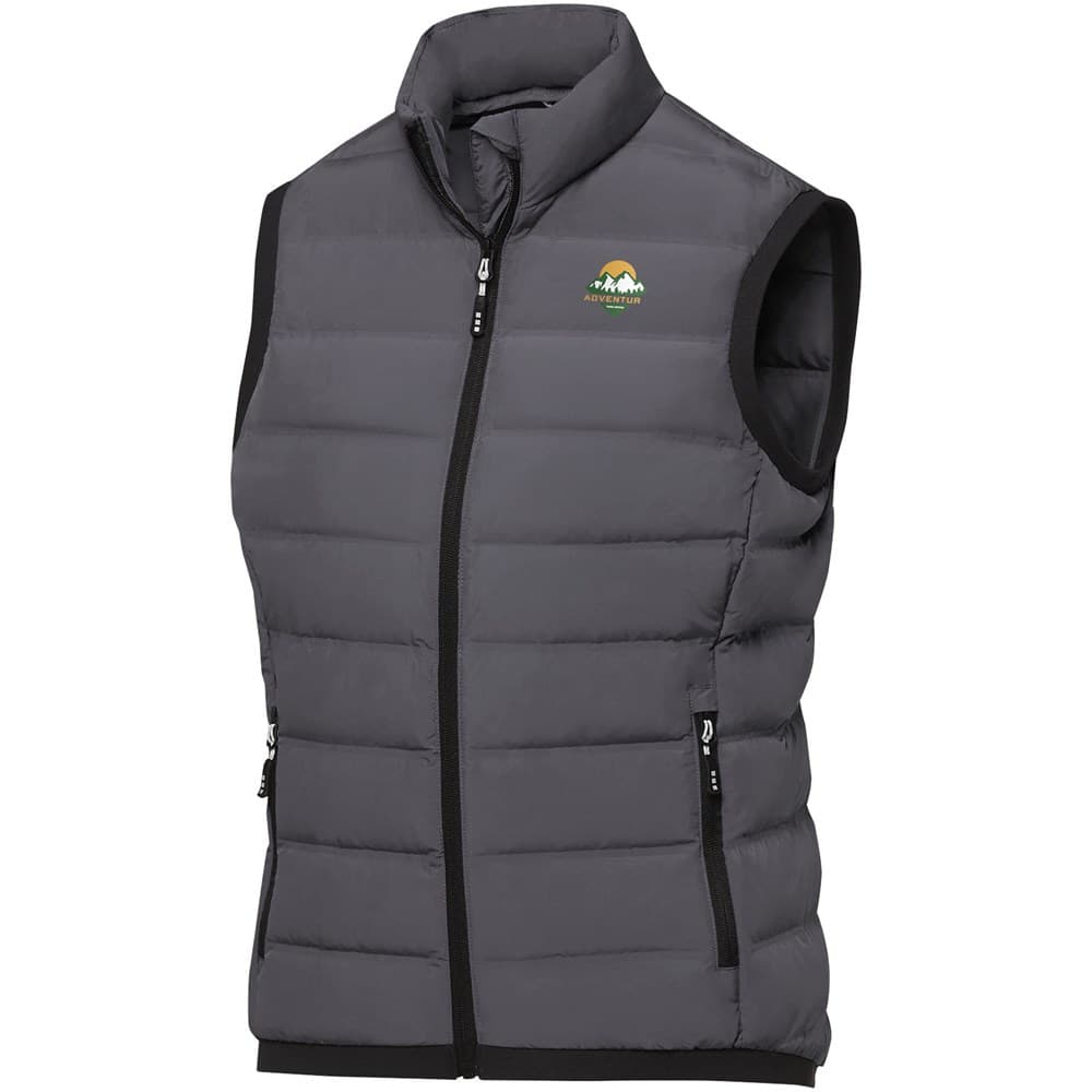 De Caltha geïsoleerde donzen bodywarmer voor dames - een veelzijdig en milieuvriendelijk bovenstuk. Gemaakt van 164 g/m² 750T geweven dubbellaags pongee stof van polyester. De matte stof in combinatie met heatseal quilting geeft de bodywarmer een moderne look en verbetert tegelijkertijd de algehele isolatie. Omarm het eco-bewustzijn met RDS-gecertificeerde gerecyclede donsisolatie van gerecycled dons en gerecyclede veren, die warmte biedt zonder afbreuk te doen aan ethische normen. Met een stormflap aan de binnenkant, een kinbeschermer en platgebreide elastische ribboorden biedt deze bodywarmer maximale bescherming tegen de elementen. De voorzakken met ritssluiting voegen gemak en functionaliteit toe. Omarm zowel stijl als ethische waarden met de Caltha bodywarmer, perfect voor elk buitenavontuur of dagelijks gebruik. Deze bodywarmer is ontworpen met een getailleerde vorm voor een vrouwelijke look. Perfect voor het bedrukken van bodywarmers.