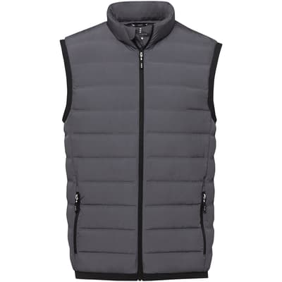 De Caltha geïsoleerde donzen bodywarmer voor heren - een veelzijdig en milieuvriendelijk bovenkledingstuk. Gemaakt van 164 g/m² 750T geweven dubbellaags pongee stof van polyester. De matte stof in combinatie met heatseal quilting geeft de bodywarmer een moderne look en verbetert tegelijkertijd de algehele isolatie. Omarm het eco-bewustzijn met RDS-gecertificeerde gerecyclede donsisolatie van gerecycled dons en gerecyclede veren, die warmte biedt zonder afbreuk te doen aan ethische normen. Met een stormflap aan de binnenkant, een kinbeschermer en platgebreide elastische ribboorden biedt deze bodywarmer maximale bescherming tegen de elementen. De voorzakken met ritssluiting voegen gemak en functionaliteit toe. Omarm zowel stijl als ethische waarden met de Caltha bodywarmer, perfect voor elk buitenavontuur of dagelijks gebruik. Perfect voor het bedrukken van bodywarmers.