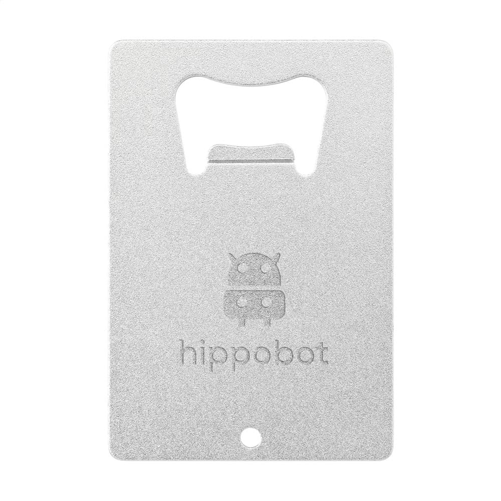 WoW! Flesopener van 100% gerecycled aluminium. De opener heeft het prettige formaat van een creditcard en is gemakkelijk aan een sleutelring te bevestigen. Aluminium kan oneindig vaak gerecycled worden terwijl de kwaliteit van het materiaal behouden blijft. Door het gebruik van gerecycled aluminium worden er minder nieuwe grondstoffen gebruikt tijdens de productie van dit product. Dit betekent minder energieverbruik en minder gebruik van water.