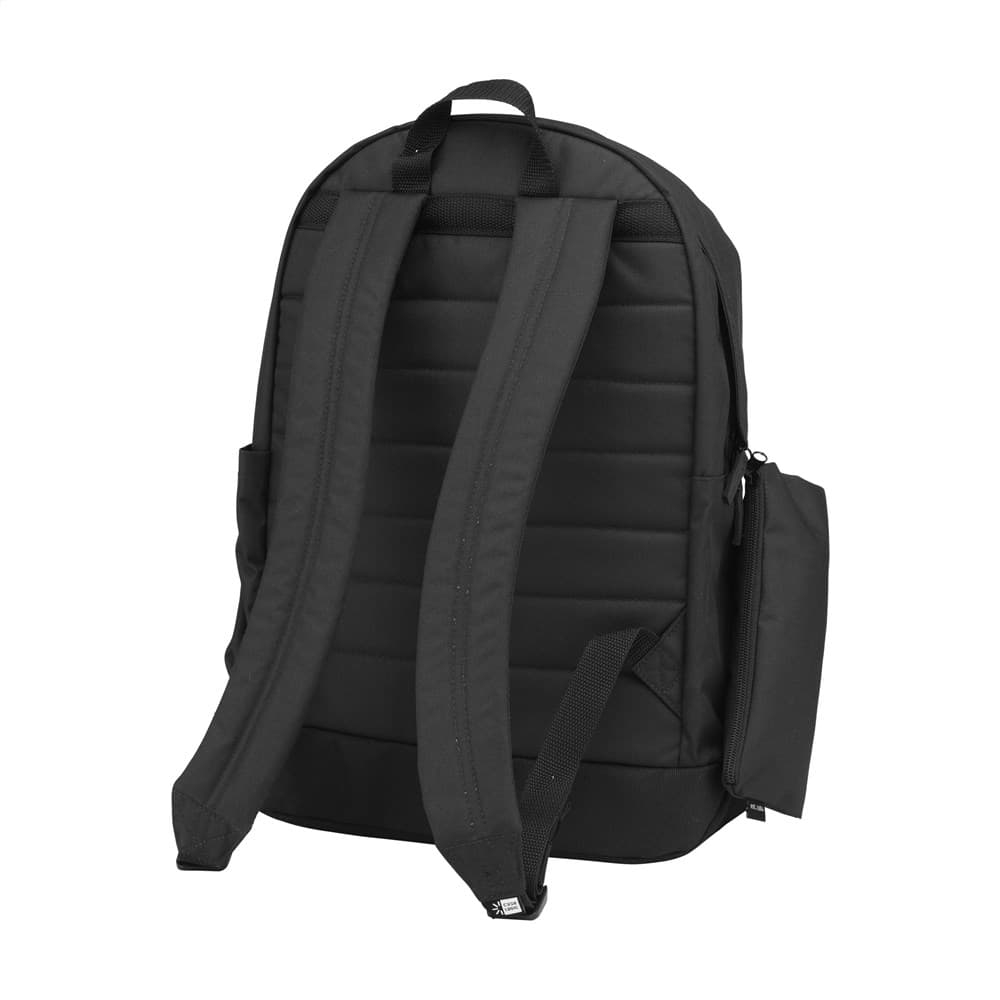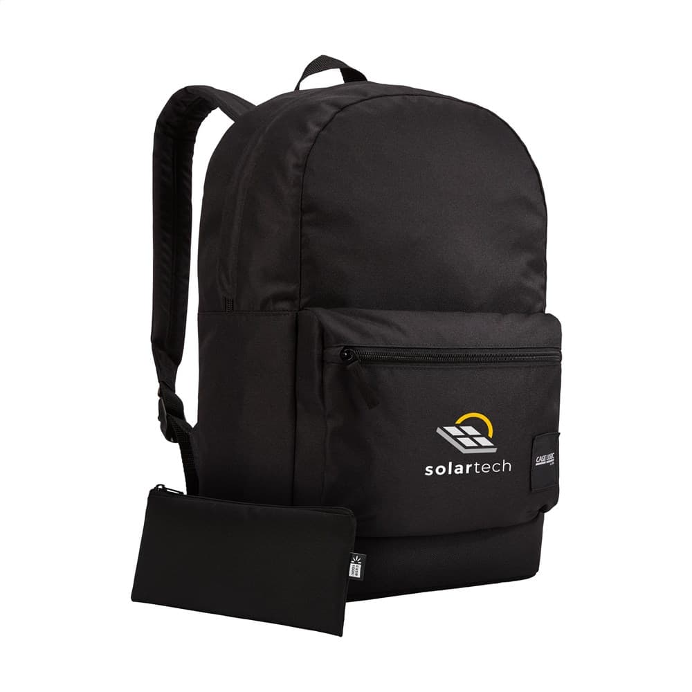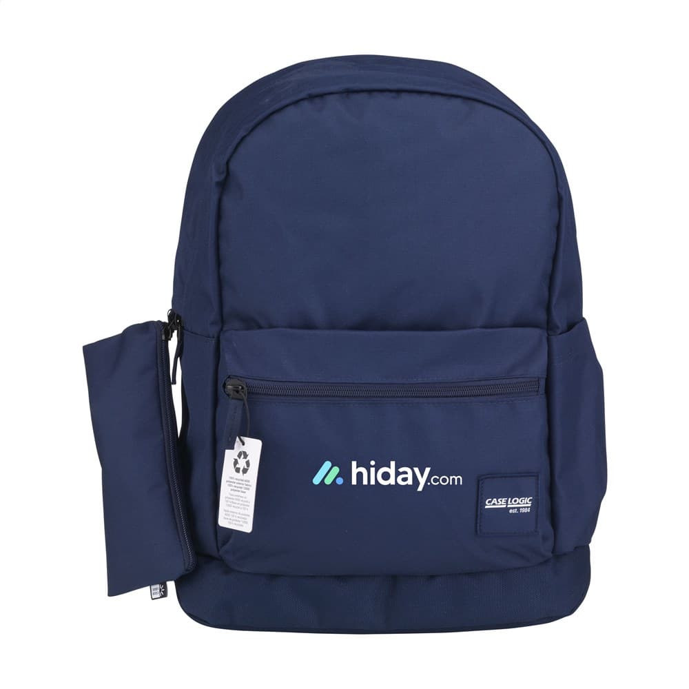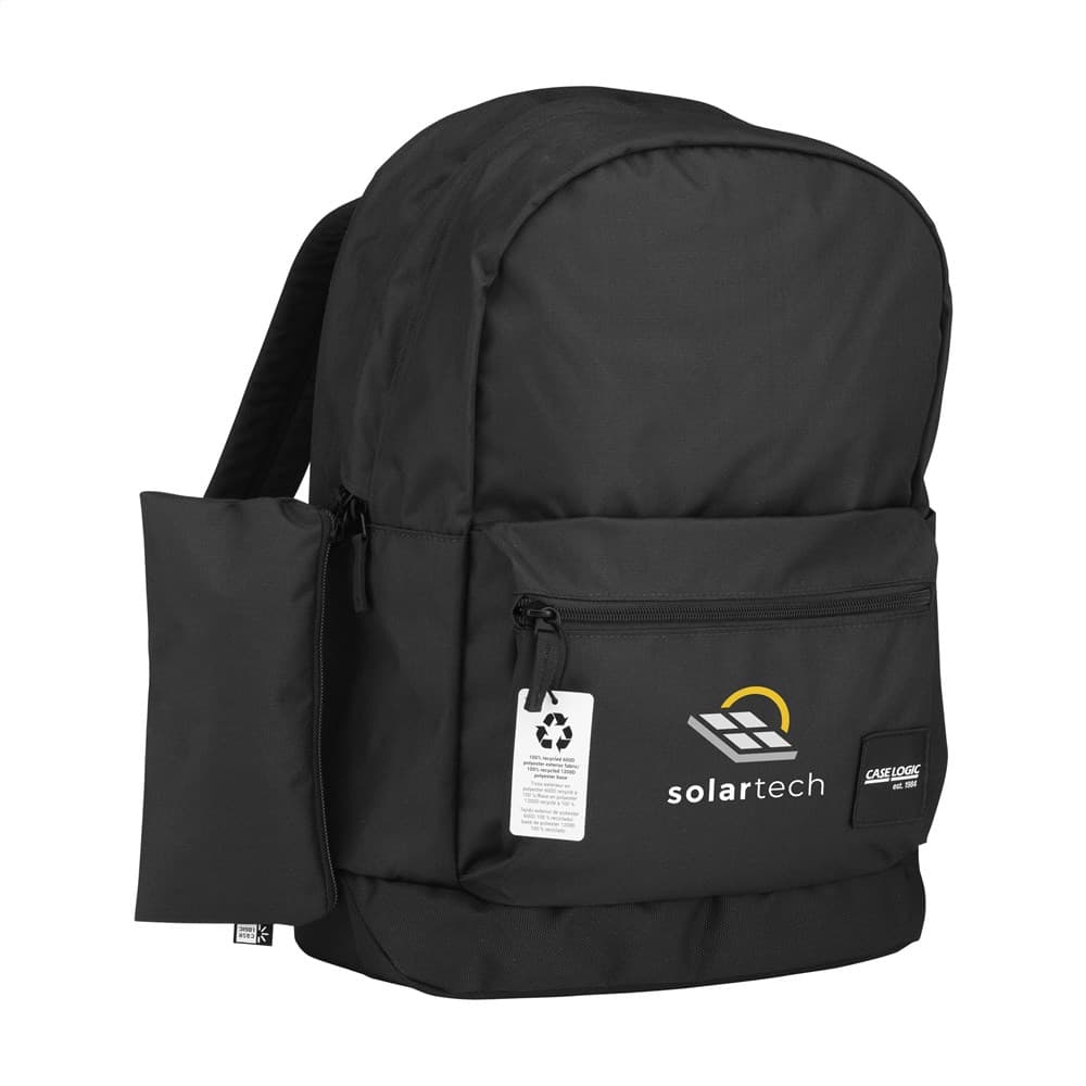 Fraai uitgevoerde rugzak van het merk Case Logic. Deze rugzak is gemaakt van gerecyclede materialen en houd je laptop, tablet en alle schoolspullen binnen handbereik. Het flexibele laptopvak is geschikt voor laptops tot maximaal 15,6 inch. Het ruime hoofdvak biedt ruimte aan boeken, documenten en mappen. Het vak aan de voorkant biedt opbergvakken voor kleine elektronica en pennen en ruimte voor kleine accessoires. In het grote zijvak past met gemak een waterfles. Met verstelbare schouderriemen die naar het lichaam gevormd zijn. De tas heeft stevige ritsen. Het volledig gevoerde achterpaneel staat garant voor extra draagcomfort. De rugzak wordt geleverd inclusief een los etui met rits. Ideaal voor het bij elkaar houden van schrijfwaren of kabels. In deze tas, van gerecycled materiaal, zijn 11 PET flessen verwerkt. Inhoud ca. 24 liter.
