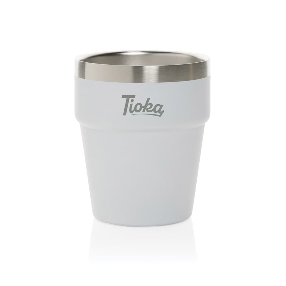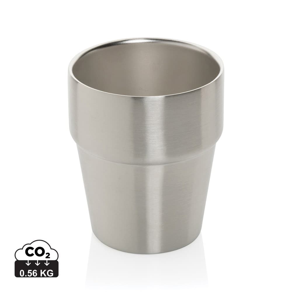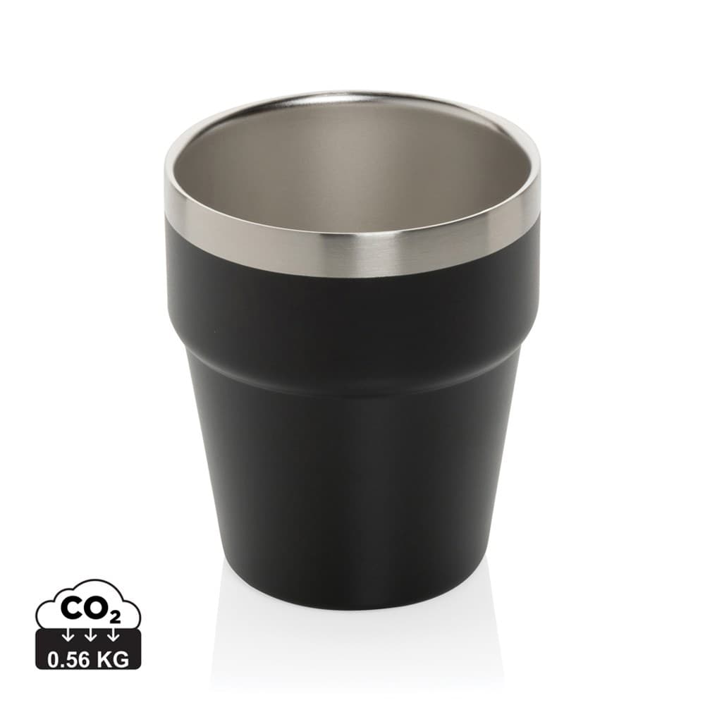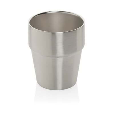 Dubbelwandige stalen beker, ideaal voor koffiemachines. Gemaakt van 100% RCS-gecertificeerd staal. RCS-certificering waarborgt een volledig gecertificeerde toeleveringsketen van gerecyclede materialen. Alleen met de hand afwassen. Totaal gerecyclede inhoud: 100% op basis van het totale gewicht van het artikel. Vrij van BPA. Inhoud: 300 ml. Inclusief FSC®-gecertificeerde kraft geschenkverpakking. Perfect voor koffiekopjes bedrukken.