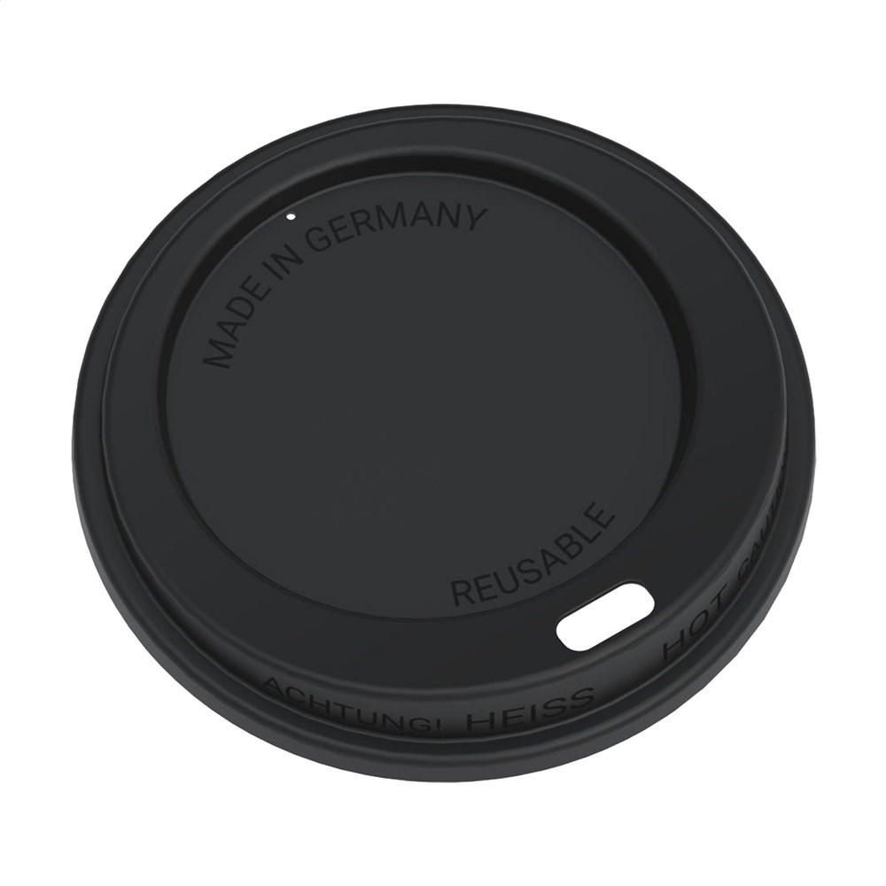 Herbruikbare koffie to-go beker van kunststof. Het deksel met drinkopening voorkomt morsen. Past in de standaard drinkhouder van auto's, dus ideaal voor onderweg, maar ook als beker bij de koffiemachine. Hét perfecte alternatief voor de wegwerpkoffiebeker. Door over te stappen op een herbruikbare beker komen er miljarden bekers minder bij het afval terecht. Deze fraaie beker is 100% recyclebaar, BPA-vrij en stapelbaar. Vaatwasserbestendig. Voor behoud van de opdruk wordt met de hand afwassen aanbevolen. Made in Germany. Inhoud 200 ml. Minimale afname 100 stuks per kleur.