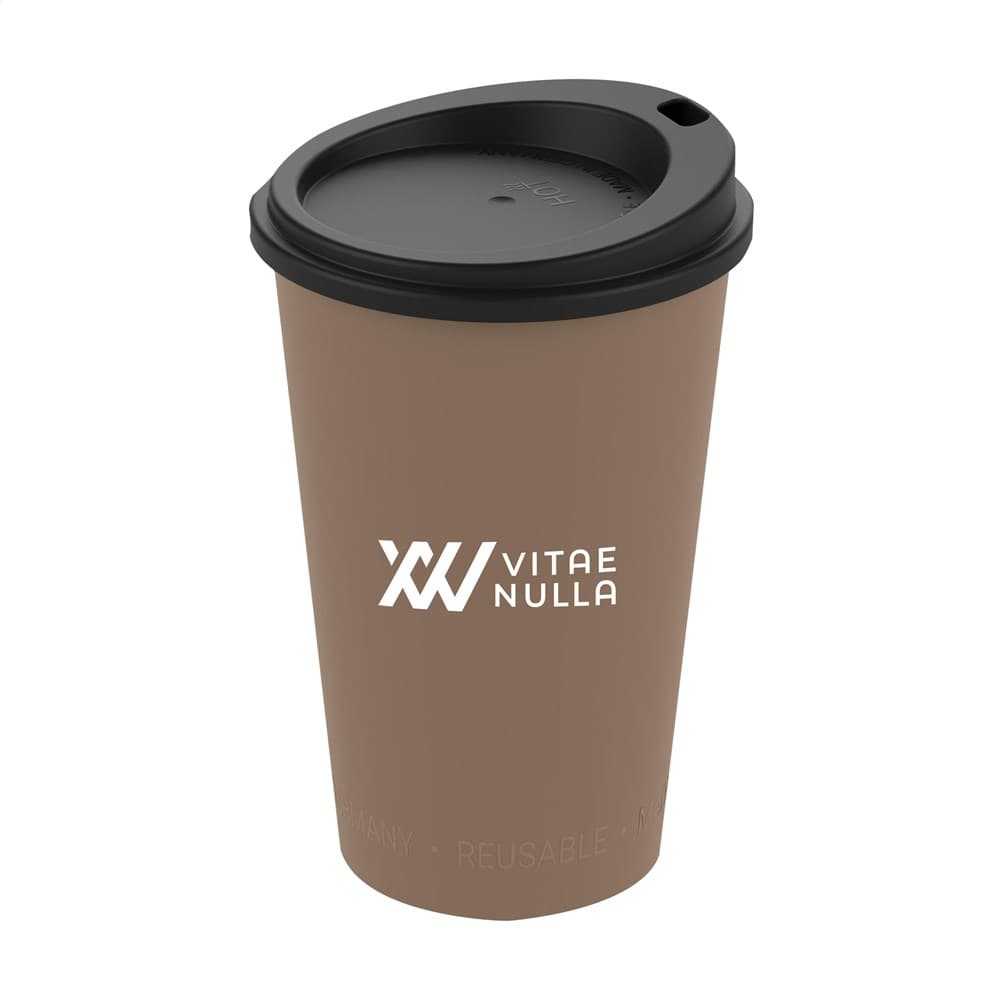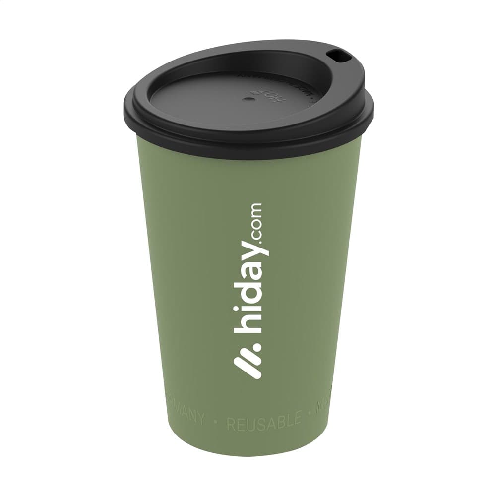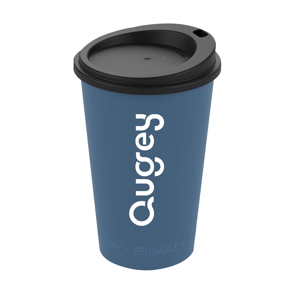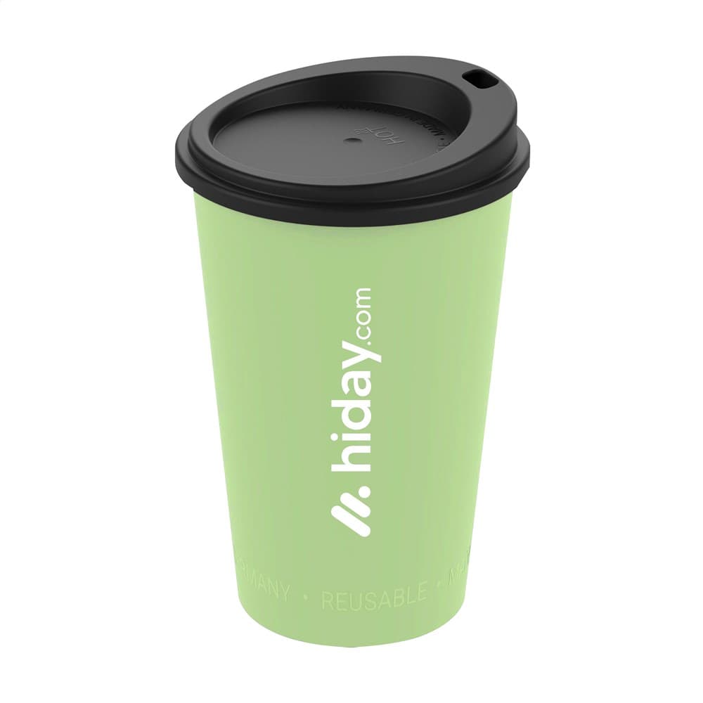 Herbruikbare koffie to-go beker van kunststof. Het deksel met drinkopening voorkomt morsen. Past in de standaard drinkhouder van auto's, dus ideaal voor onderweg. Hét perfecte alternatief voor de wegwerpkoffiebeker. Door over te stappen op een herbruikbare beker komen er miljarden bekers minder bij het afval terecht. Deze fraaie beker is 100% recyclebaar, BPA-vrij en stapelbaar. Inhoud 300 ml. Made in Germany.