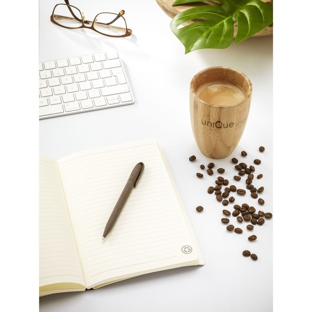WoW! Een blauwschrijvende balpen gemaakt van 30% koffiedik en 70% Ocean Bound Plastic (RPP) van Plastic Bank®. Koffiedik (het restant na het zetten van koffie) wordt verzameld en samengesmolten met het Ocean bound Plastic. Een uniek kenmerk is dat deze pen zelfs naar koffie ruikt. De balpen heeft een handige clip en een slim draaikliksysteem. Made in Europe. • Met de aankoop van dit product steun je Plastic Bank®. Plastic Bank® is een internationale organisatie met twee hoofddoelen die ons allemaal aangaan: het terugdringen van de armoede en het verminderen van het plastic afval in de oceanen. Plastic Bank® betaalt mensen in ontwikkelingslanden voor het inleveren van plastic afval. Dit plastic haalt men van stranden en uit het ondiepe gedeelte van de oceanen, uit rivieren, van rivieroevers en van vuilstortplaatsen. Door dit alles wordt voorkomen dat dit plastic afval daadwerkelijk in de oceanen terechtkomt. Het ingezamelde plastic wordt gesorteerd, schoongemaakt en verwerkt tot korrels. Van deze korrels worden nieuwe producten gemaakt die het Social Plastic® label mogen dragen.