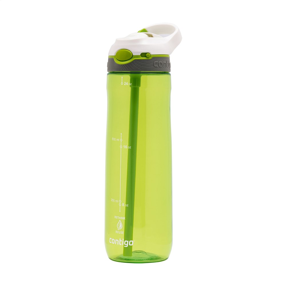 Zeer mooie, gebruiksvriendelijke Contigo® waterfles van helder BPA-vrij Tritan™ Renew from Eastman. Met 50% gerecycled materiaal zonder dat dit ten koste gaat van de kwaliteit. De fles is uitgerust met de AUTOSPOUT®-technologie, een uniek vergrendelsysteem, en met een karabijnhaak. Vaatwasserbestendig. Voor behoud van de opdruk wordt met de hand afwassen aanbevolen. Inhoud 720 ml. VOORRAAD INFORMATIE: Tot 1.000 stuks beschikbaar binnen 10 werkdagen. Uitzonderingen voorbehouden. Contigo: Dé uitblinker in kwaliteit, vormgeving en technologie. Direct herkenbaar aan de strakke en stijlvolle vormgeving, stevig en sterk. De innovatieve Contigo waterflessen en thermosbekers zijn geurloos, smaakvrij en BPA-vrij. De drinkflessen zijn met één hand te bedienen en gegarandeerd 100% lekvrij, dus overal en altijd te gebruiken. Met 2 jaar fabrieksgarantie.
