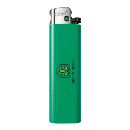 Cricket Eco aansteker, 100% recycled nylon body met kinderbeveiliging en ISO gecertificeerd. Perfect voor cricket aanstekers bedrukken.