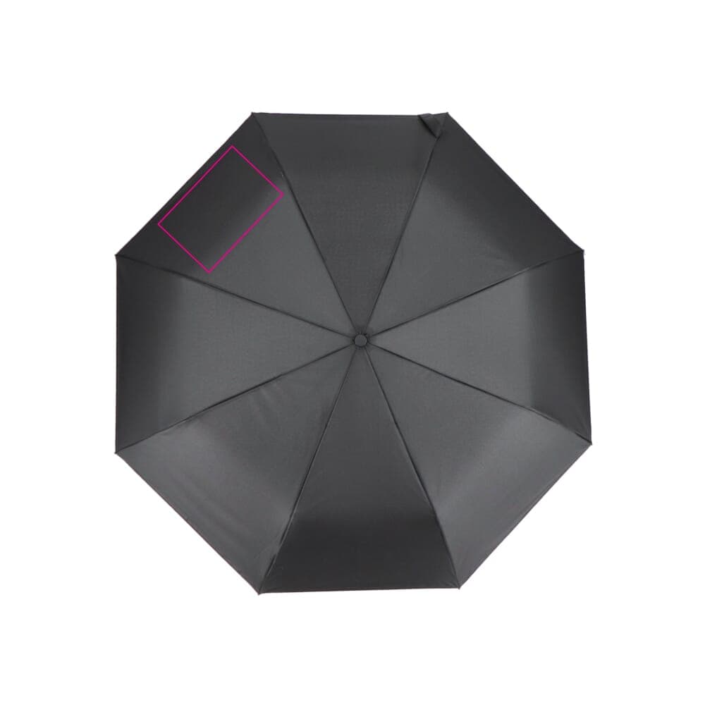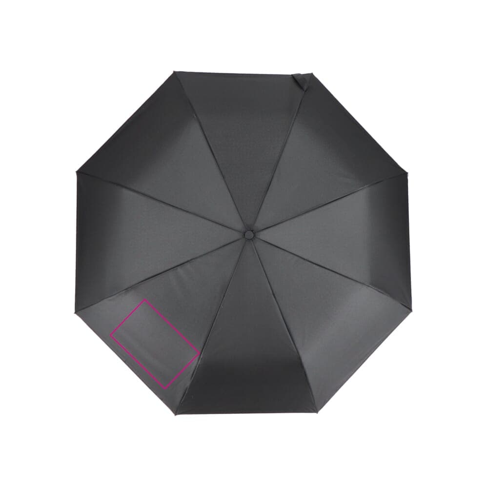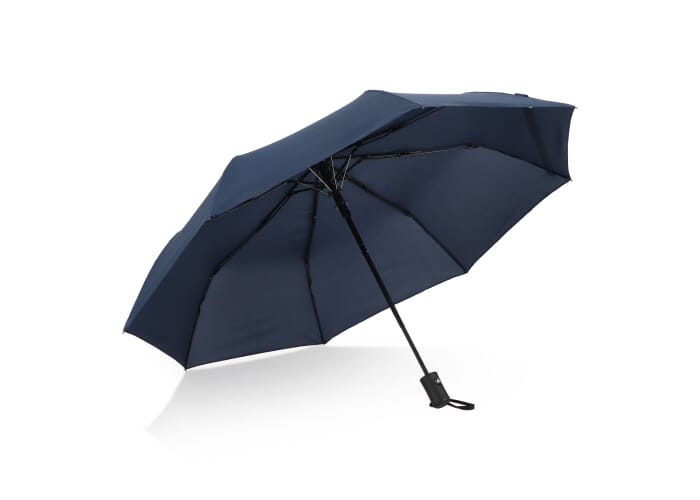Deze 21.5" vouwparaplu is bestand tegen wind met een fiberglas frame en 190T Pongee doek. Automatische opening en handmatige sluiting. Inclusief hoes en koord aan het handvat voor extra veiligheid tijdens gebruik. Het ABS-handvat zorgt voor een comfortabele grip.