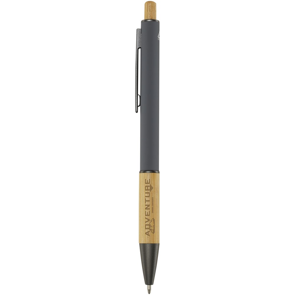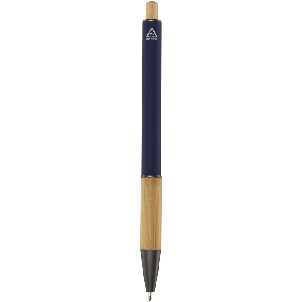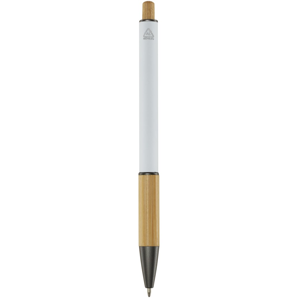 De Darius balpen is gemaakt van gerecycled aluminium, wat minder energie kost dan het produceren van aluminium uit grondstoffen. Het vermindert ook de hoeveelheid afval op stortplaatsen en draagt bij aan het behoud van natuurlijke hulpbronnen met als doel de uitstoot van broeikasgassen te beperken. De drukknop en de onderkant van de houder zijn gemaakt van bamboe. Inktkleur: zwart. Schrijflengte: 800 meter. Stiftmaat: 1,00 mm.
