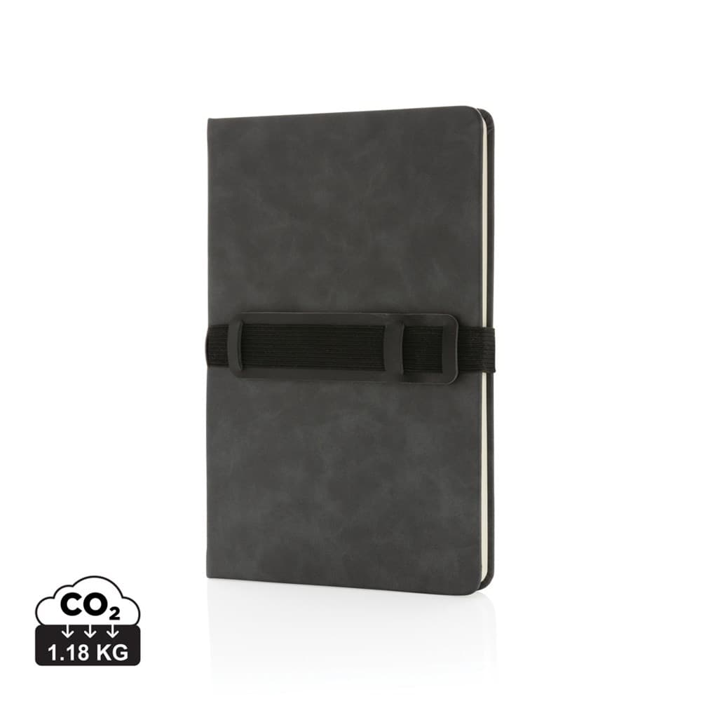 Deluxe hardcover PU A5 notitieboek met telefoon-/penhouder