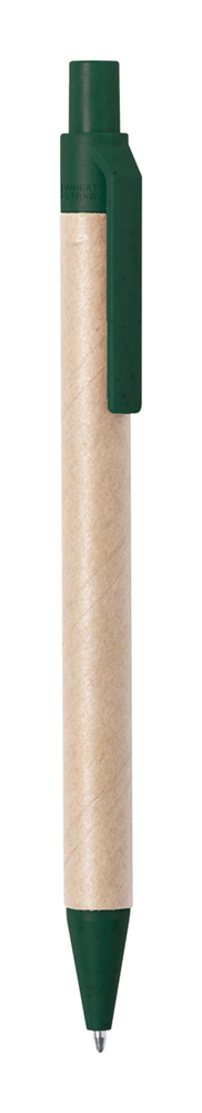 Balpen van gerecycled papier met ecologische plastic onderdelen van tarwestro. Blauw schrijvend.