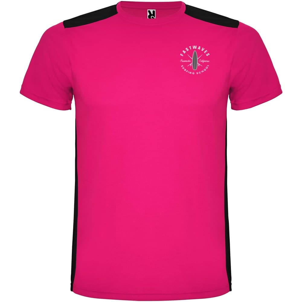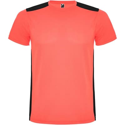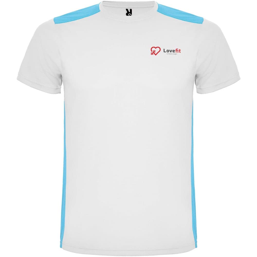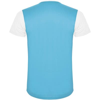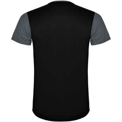 Gemakkelijk drogende, technische en ademende stof. Ronde hals. Combinatie van twee polyesterstoffen op de rug en schouders. Birdseye-stof aan de voorkant en ademende 3D-meshstof aan de achterkant. Stof voorbereid voor vochtopname. Decoratieve zigzagsteek aan de zijkanten en schouders. Rugpatroon is iets langer. Verwijderbaar label.
