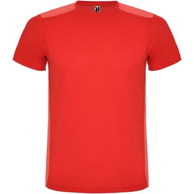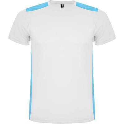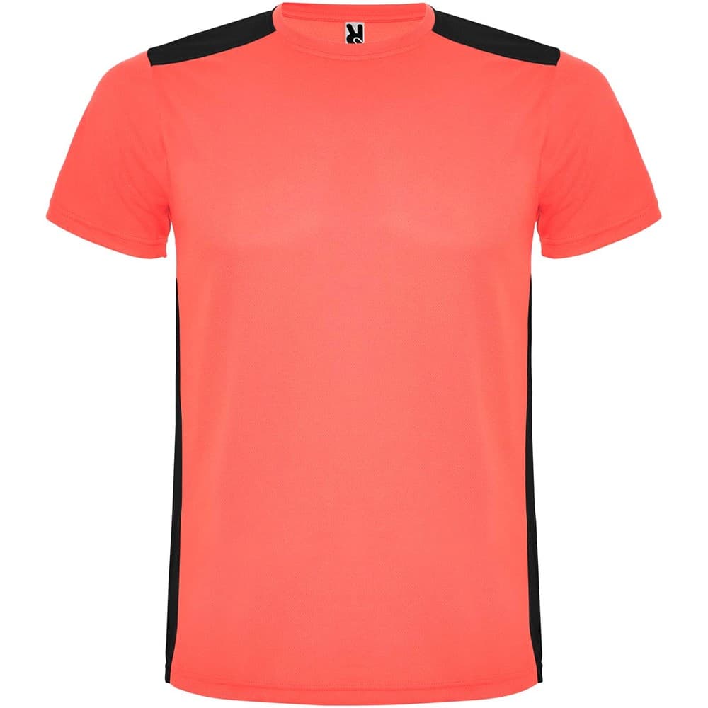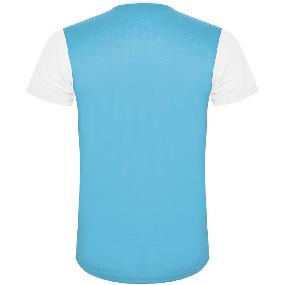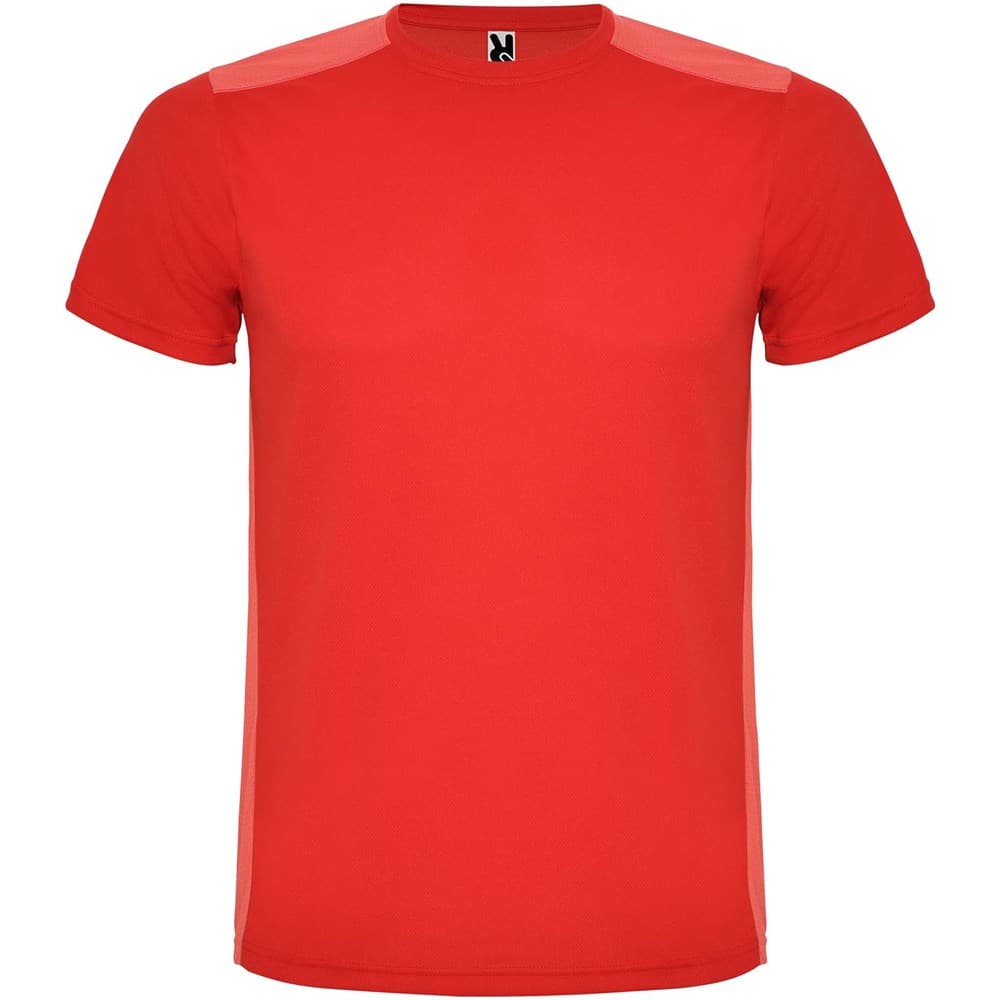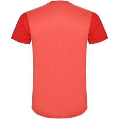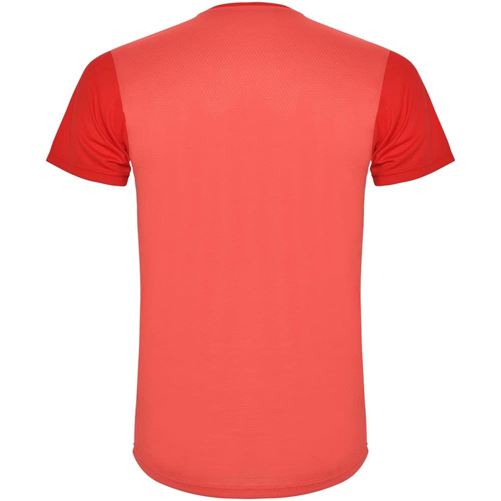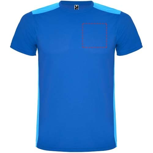 Gemakkelijk drogende, technische en ademende stof. Ronde hals. Combinatie van twee polyesterstoffen op de rug en schouders. Birdseye-stof aan de voorkant en ademende 3D-meshstof aan de achterkant. Stof voorbereid voor vochtopname. Decoratieve zigzagsteek aan de zijkanten en schouders. Rugpatroon is iets langer. Verwijderbaar label.